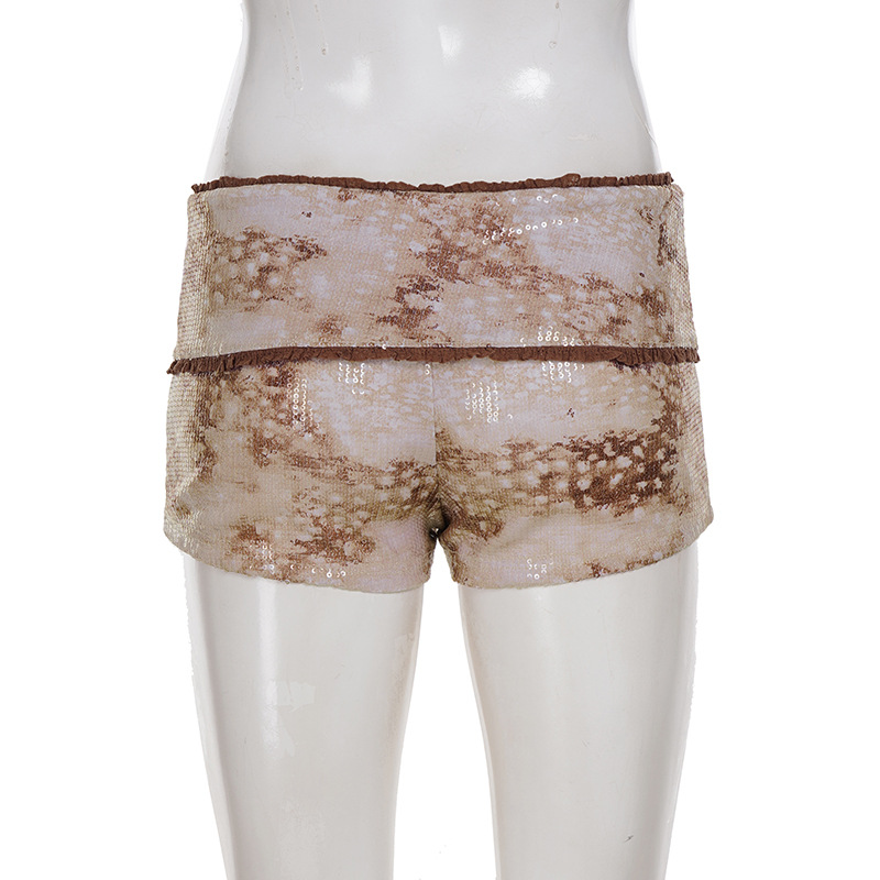 5 New Hot American Style Low Waist Lace Stitching Sequin Shorts