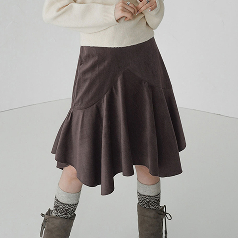 Autumn And Winter Retro Design Irregular Midi Skirt For Women