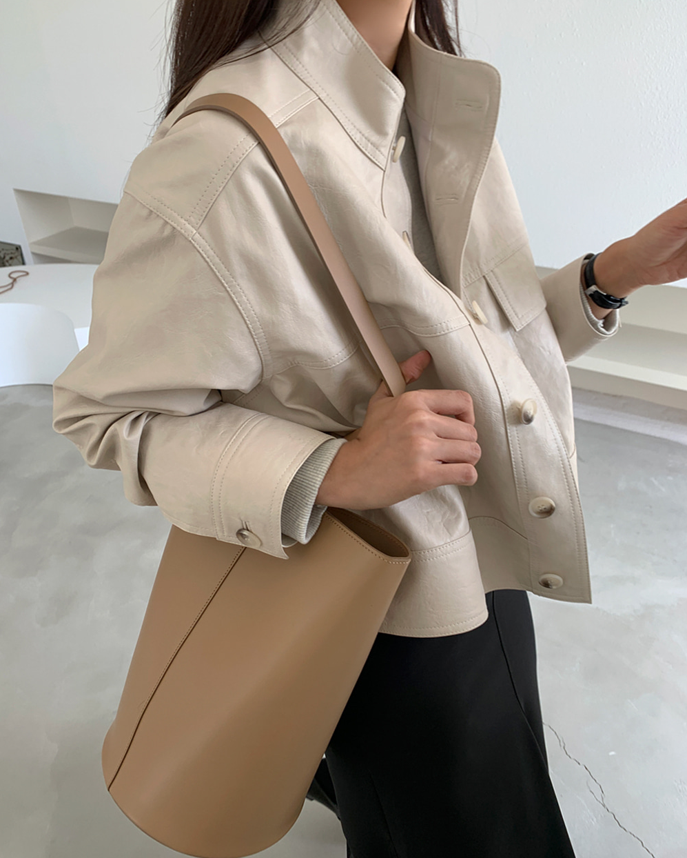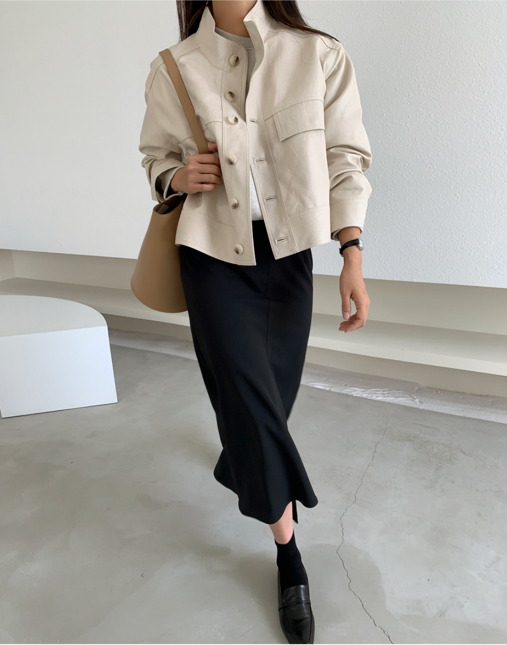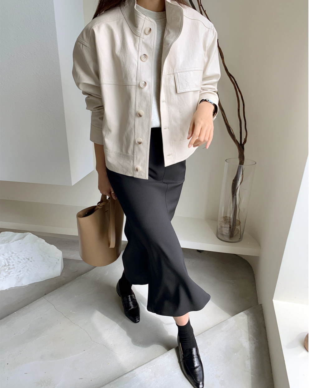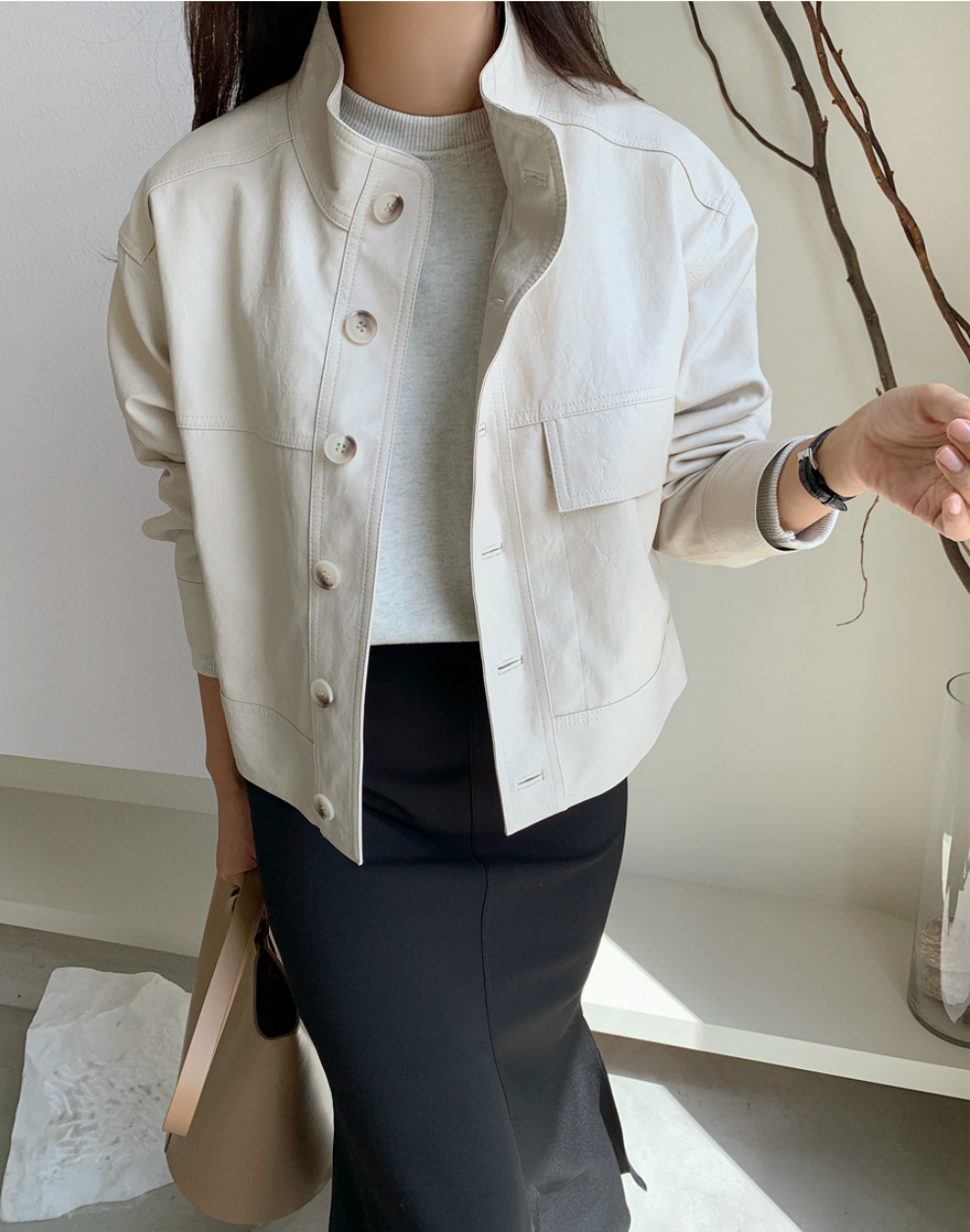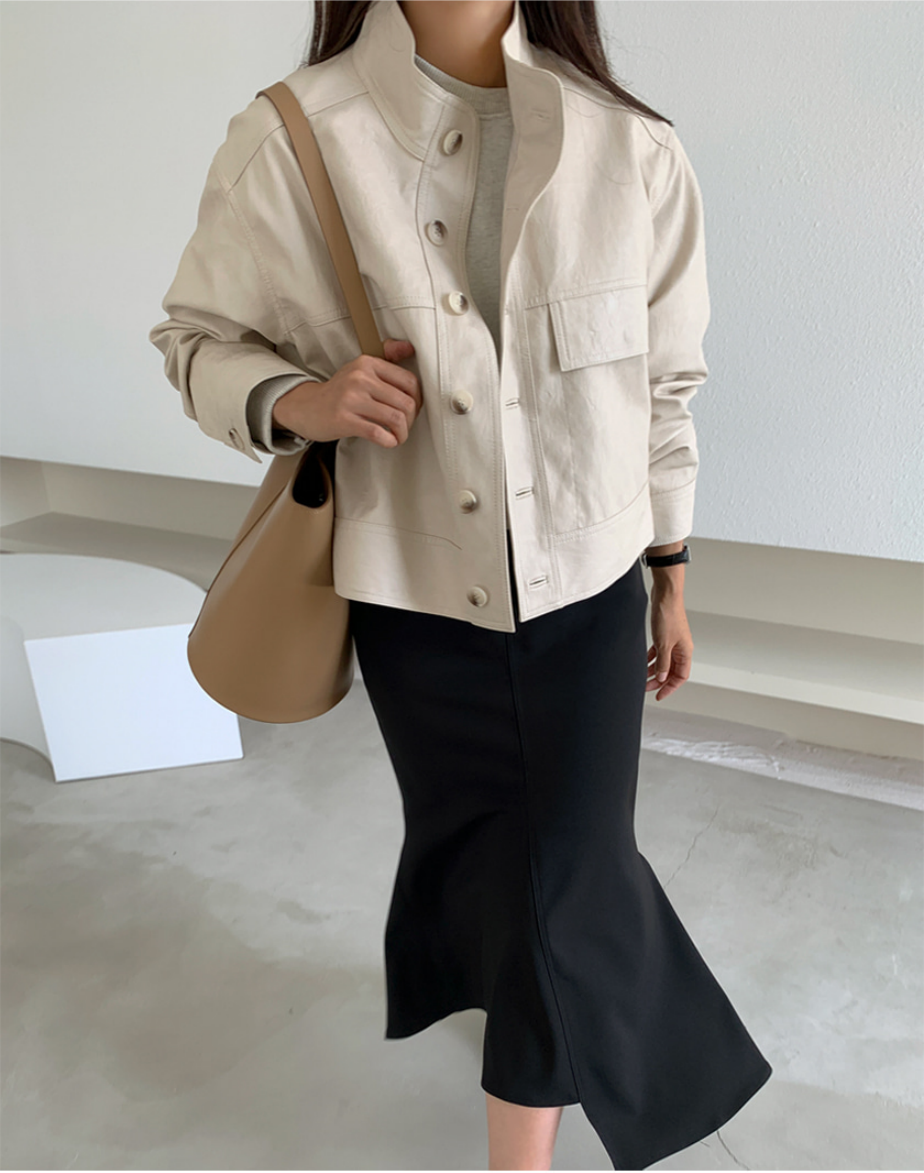 Autumn Simple Versatile Stand Collar Single-breasted Loose Long Sleeve