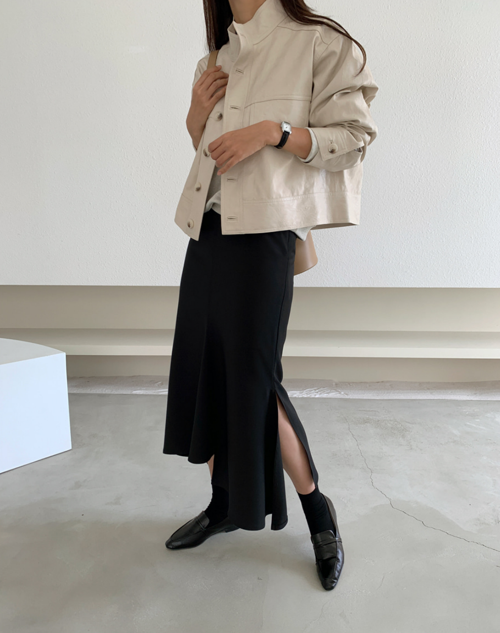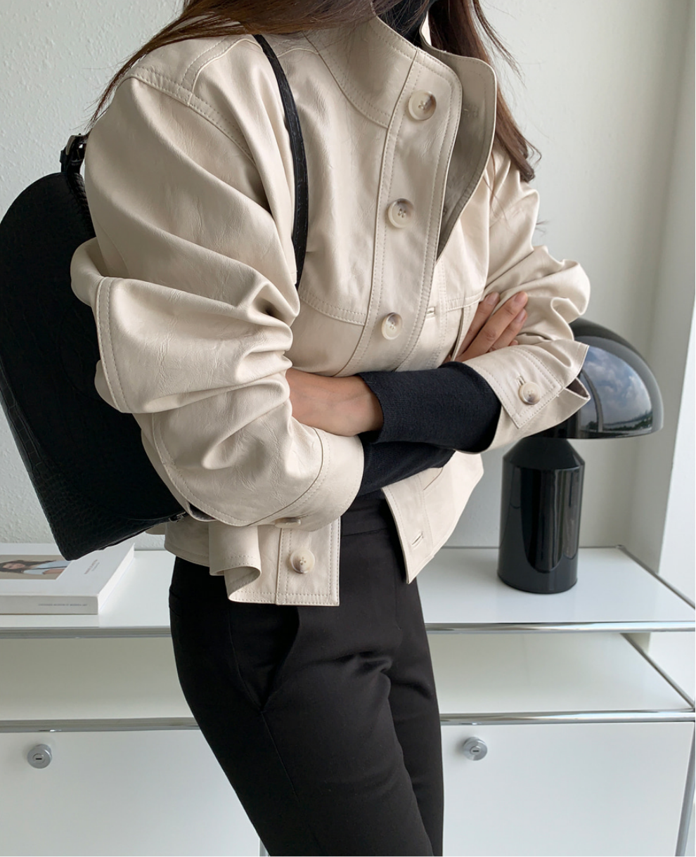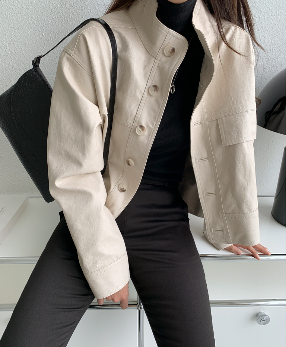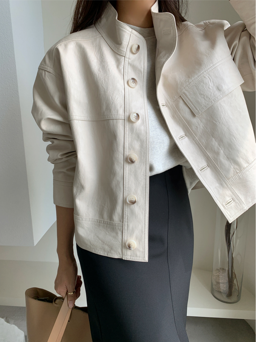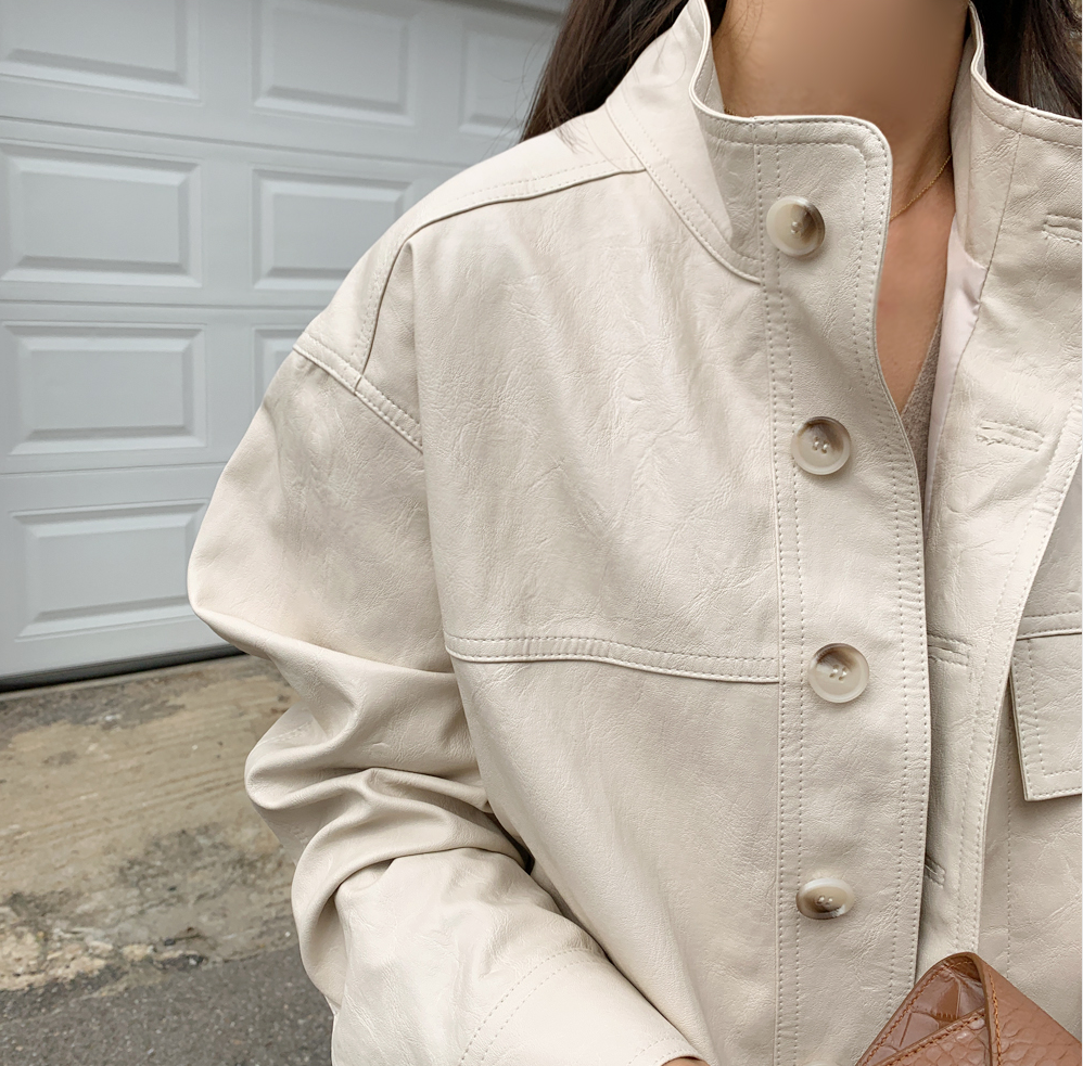 Autumn Simple Versatile Stand Collar Single-breasted Loose Long Sleeve
