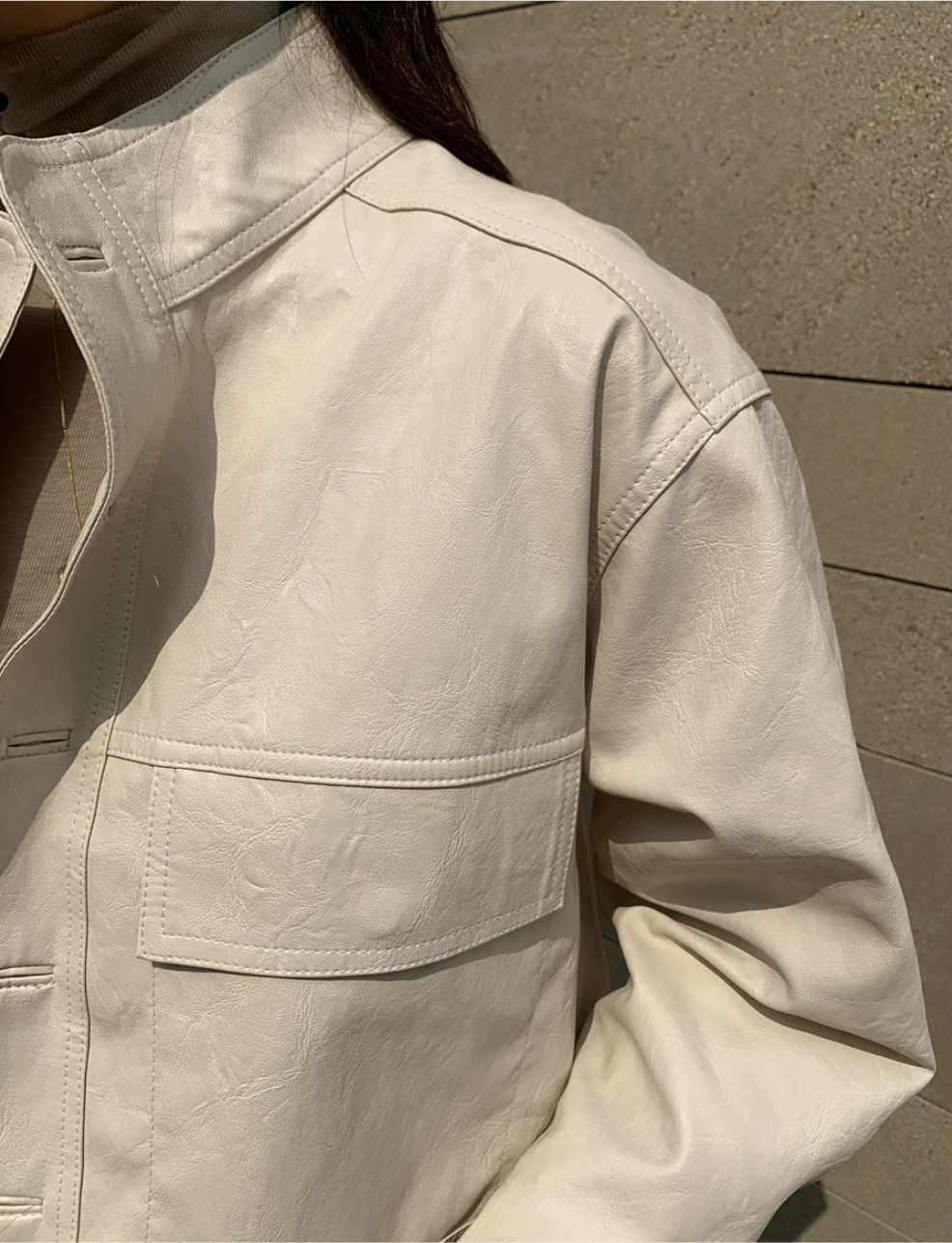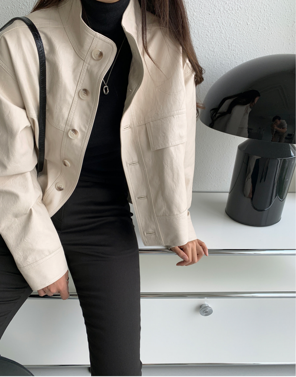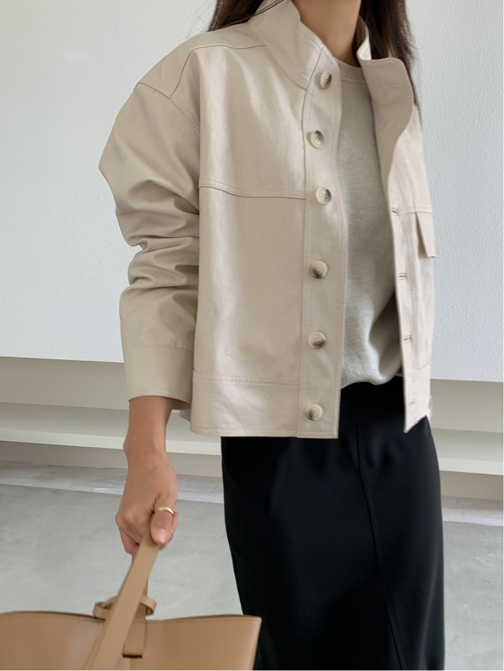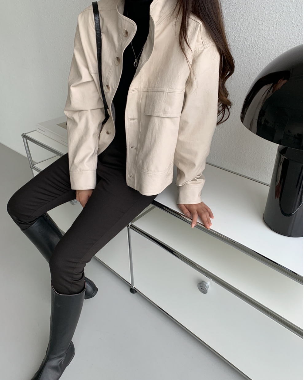 Autumn Simple Versatile Stand Collar Single-breasted Loose Long Sleeve