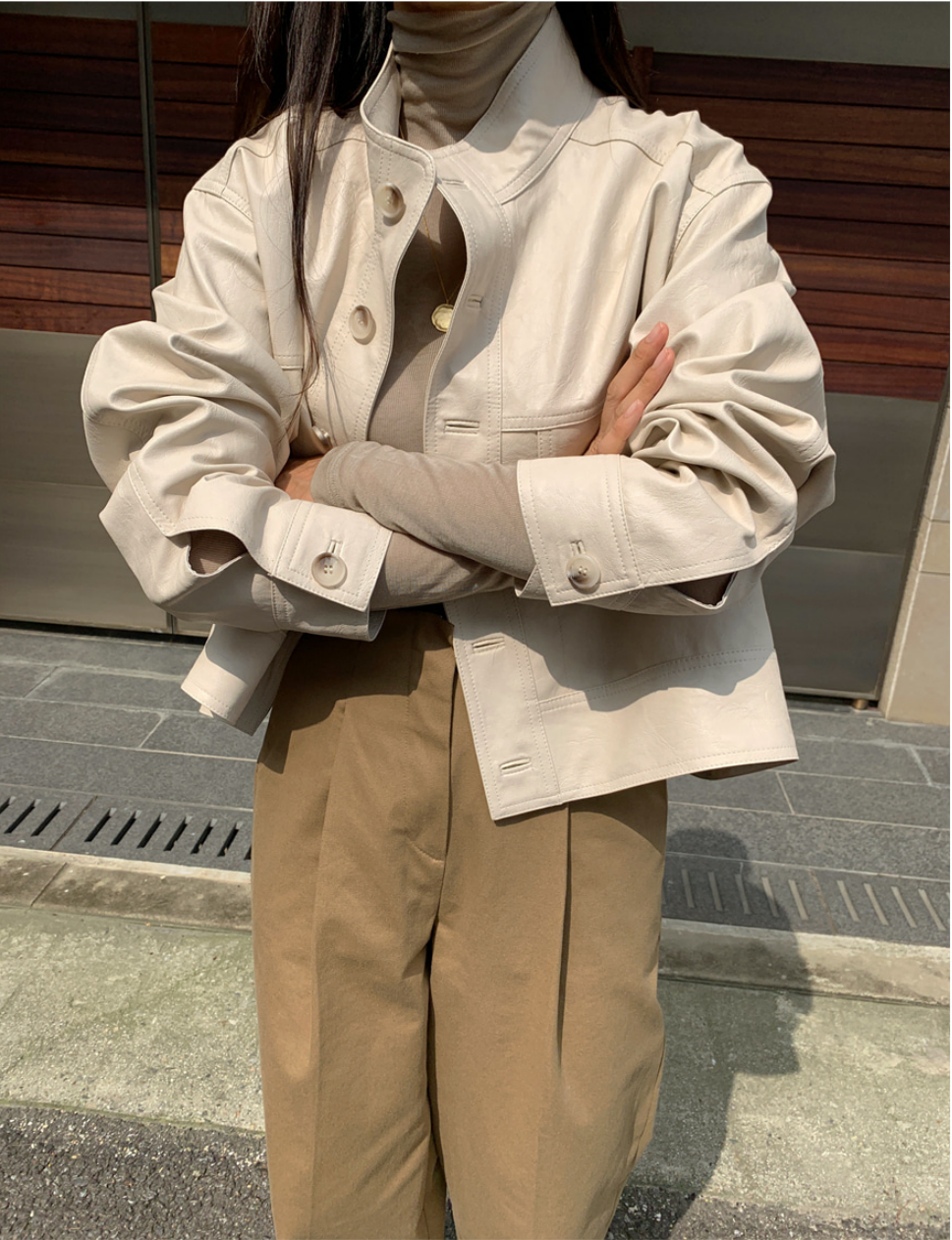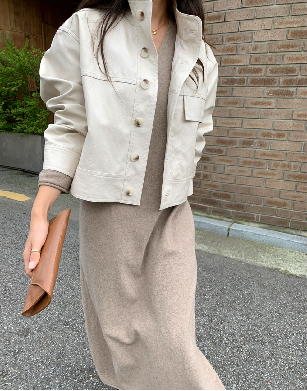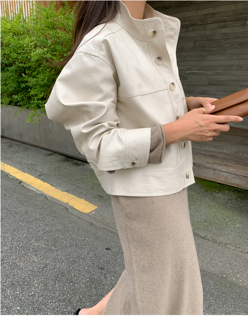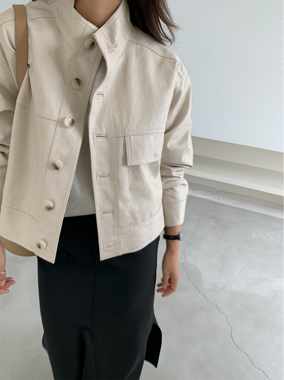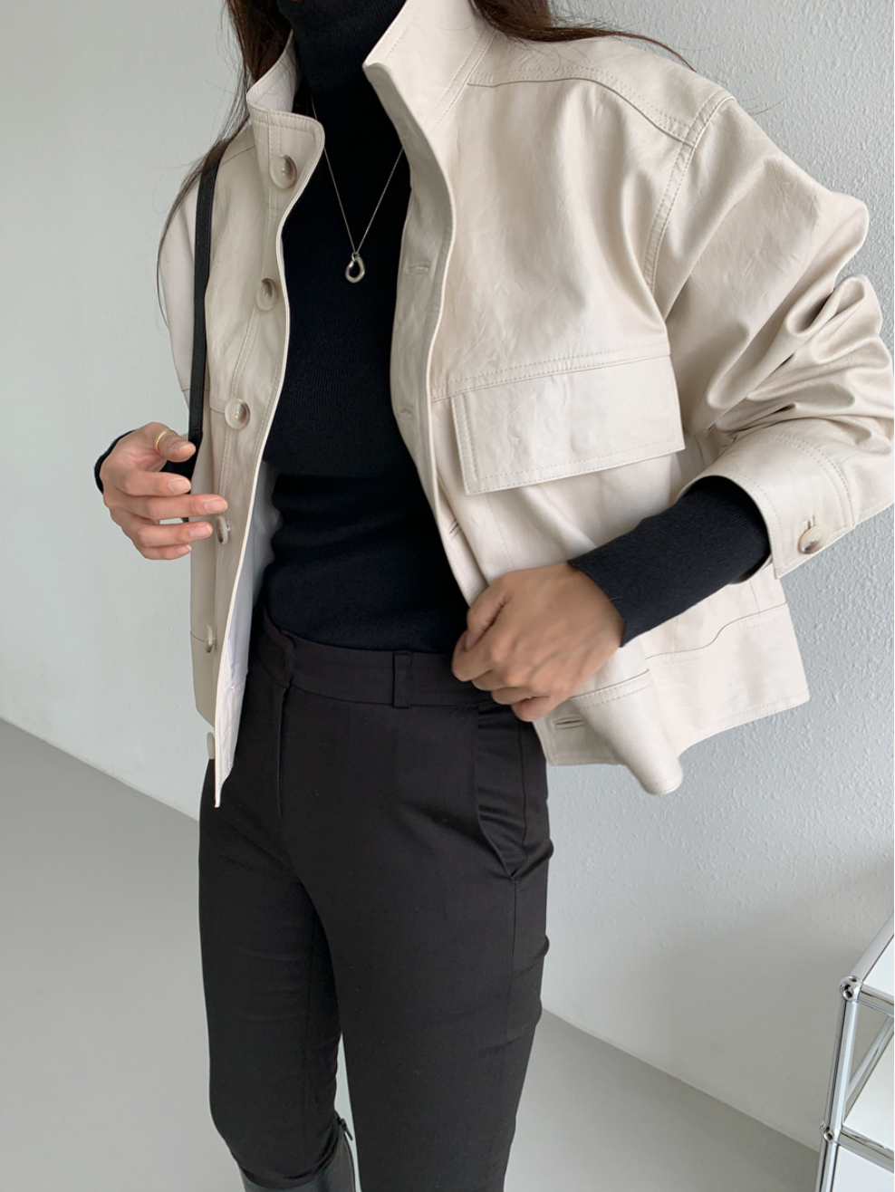 Autumn Simple Versatile Stand Collar Single-breasted Loose Long Sleeve