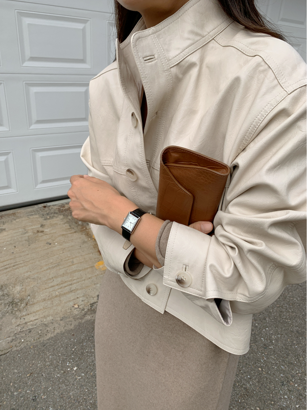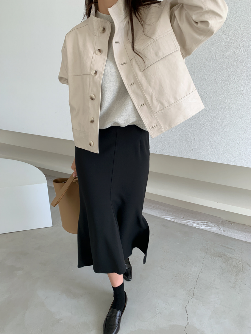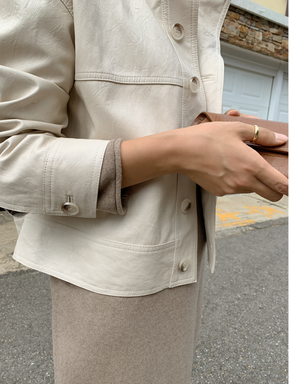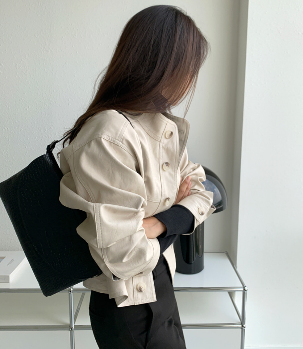 Autumn Simple Versatile Stand Collar Single-breasted Loose Long Sleeve
