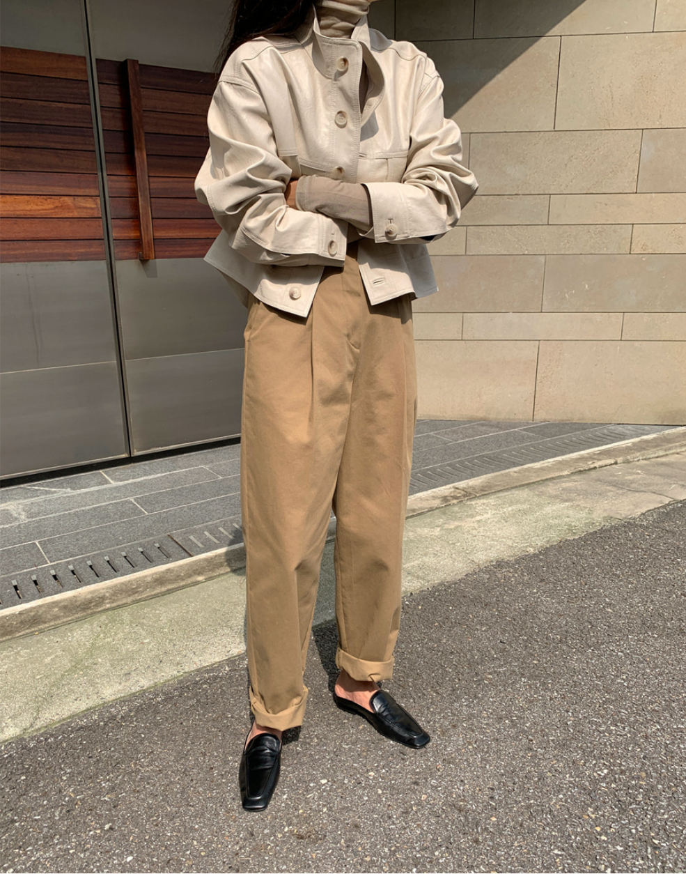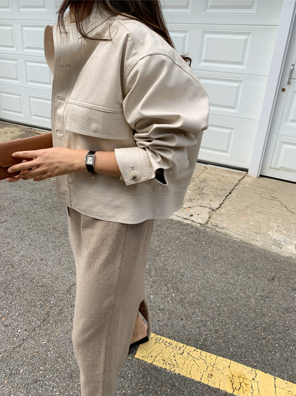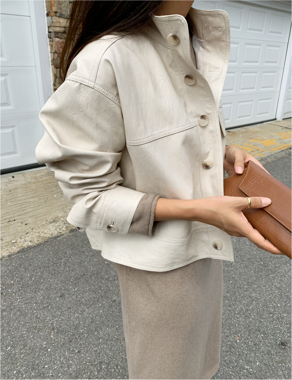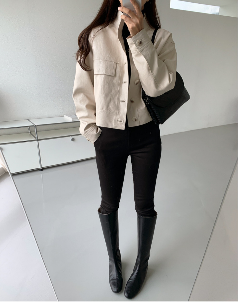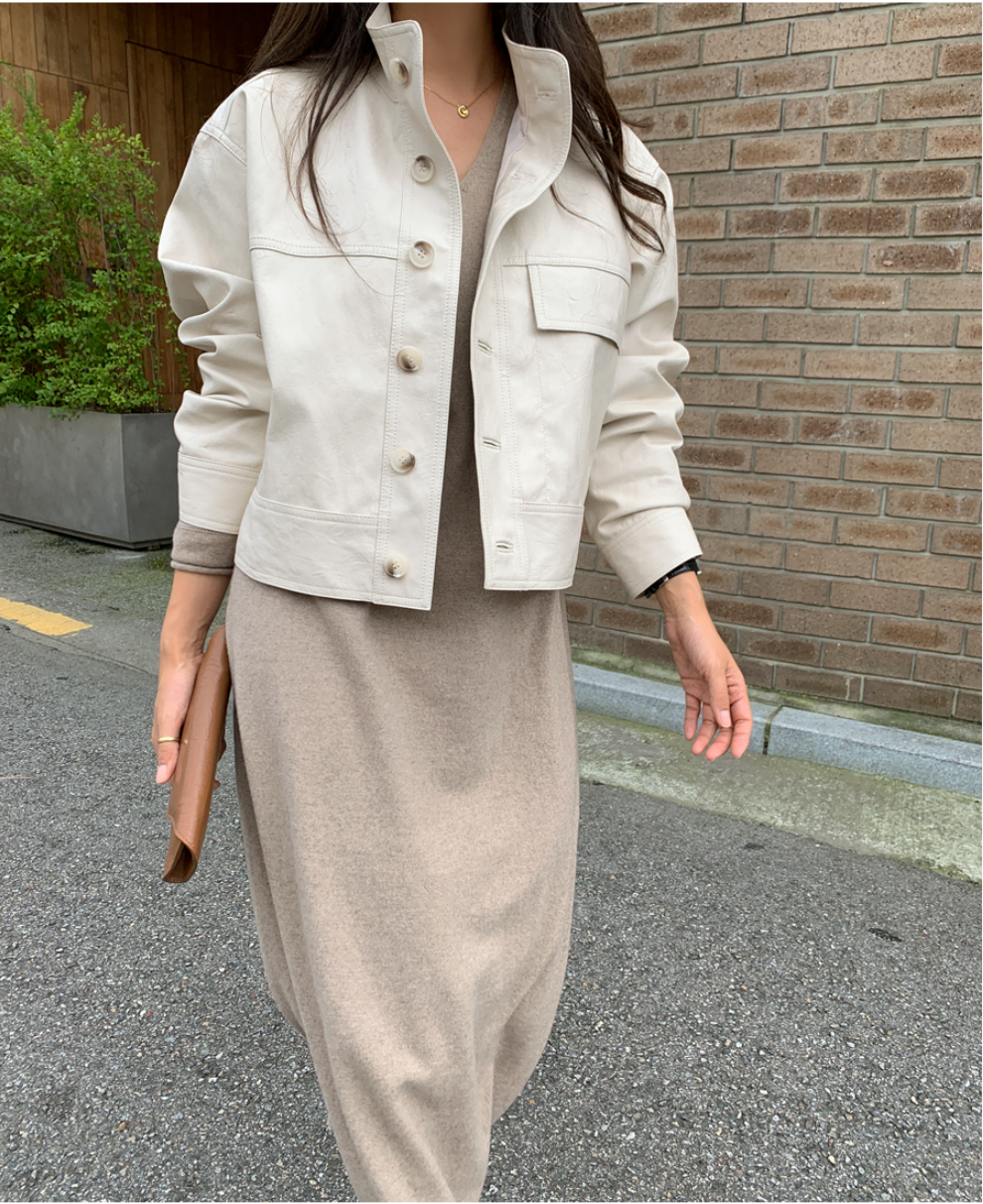 Autumn Simple Versatile Stand Collar Single-breasted Loose Long Sleeve