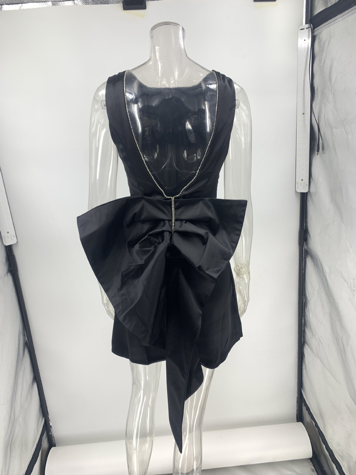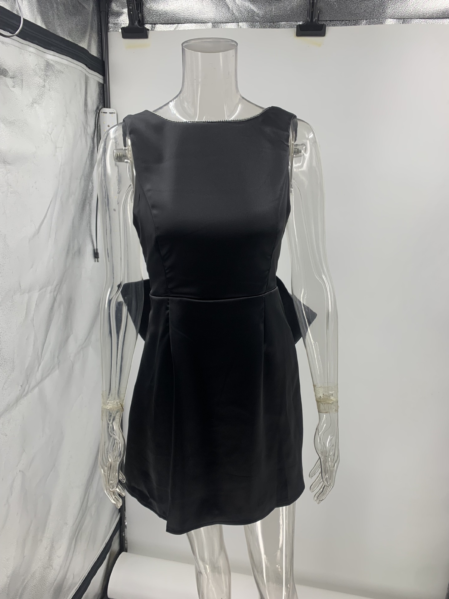 Backless Satin Dress With Bow Detailing