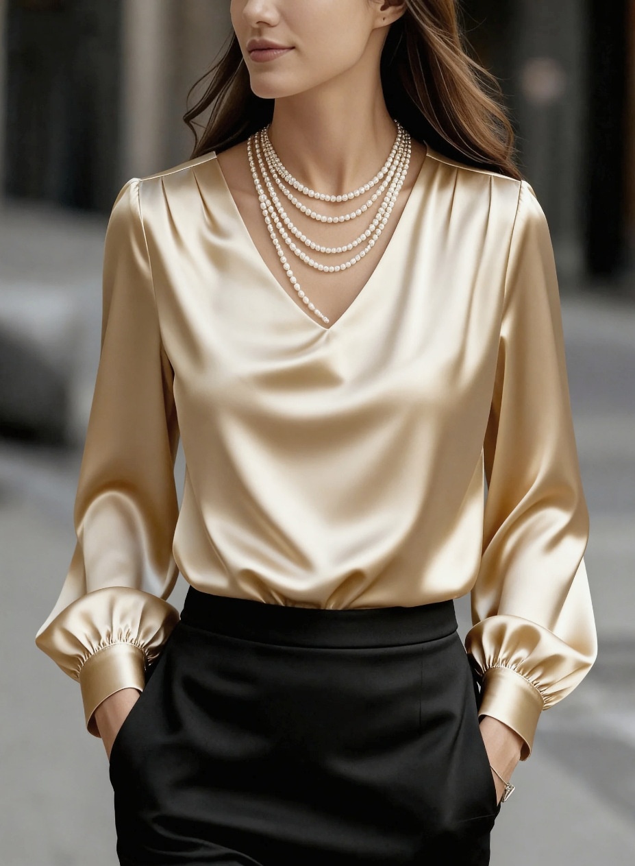 Bubble Sleeve V-neck Long Sleeve Blouse For Women