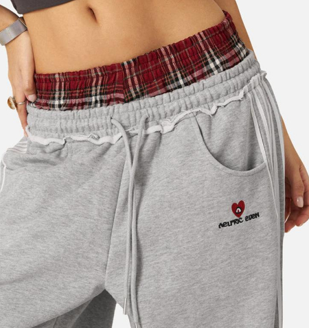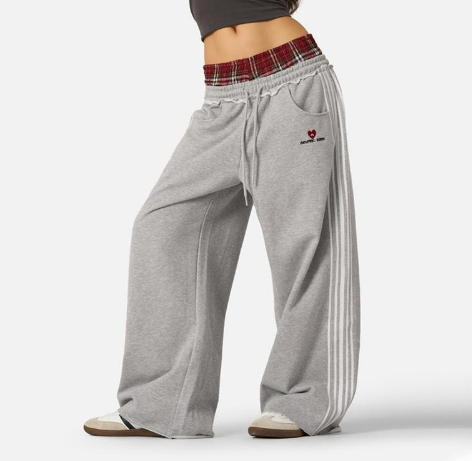 Casual Patchwork Plaid Loose Wide-Leg Pants