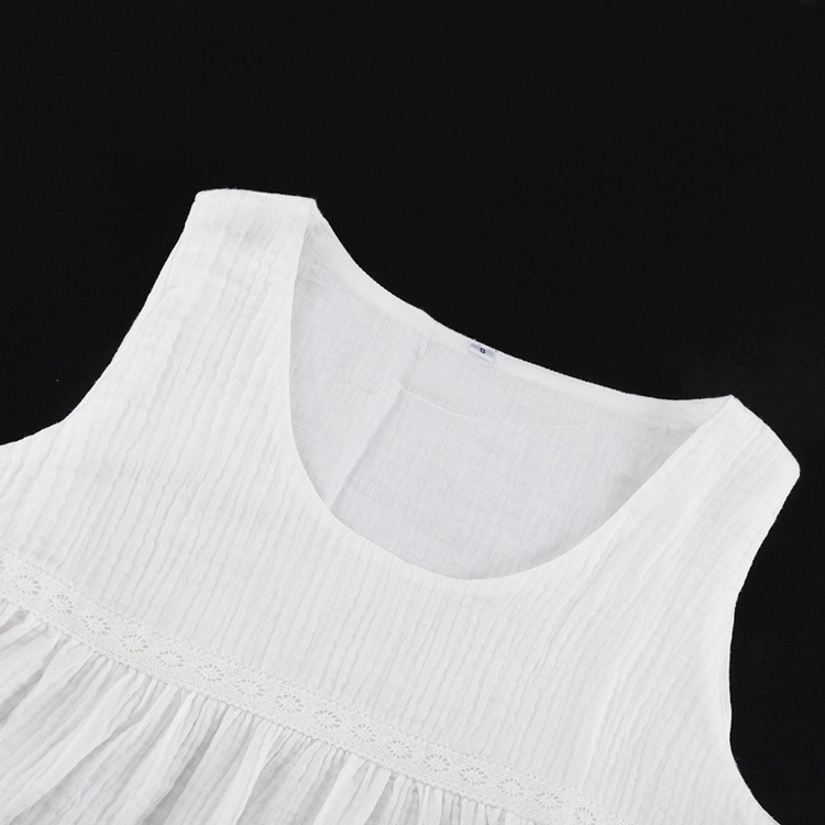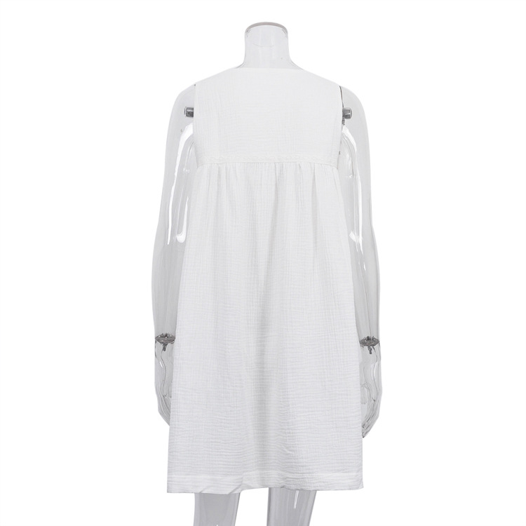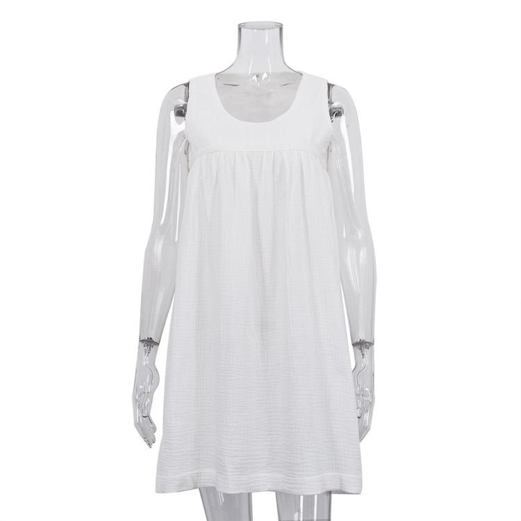 Casual White Tank Dress Cotton Crinkle Fabric Sleeveless & Loose-fitting Dress