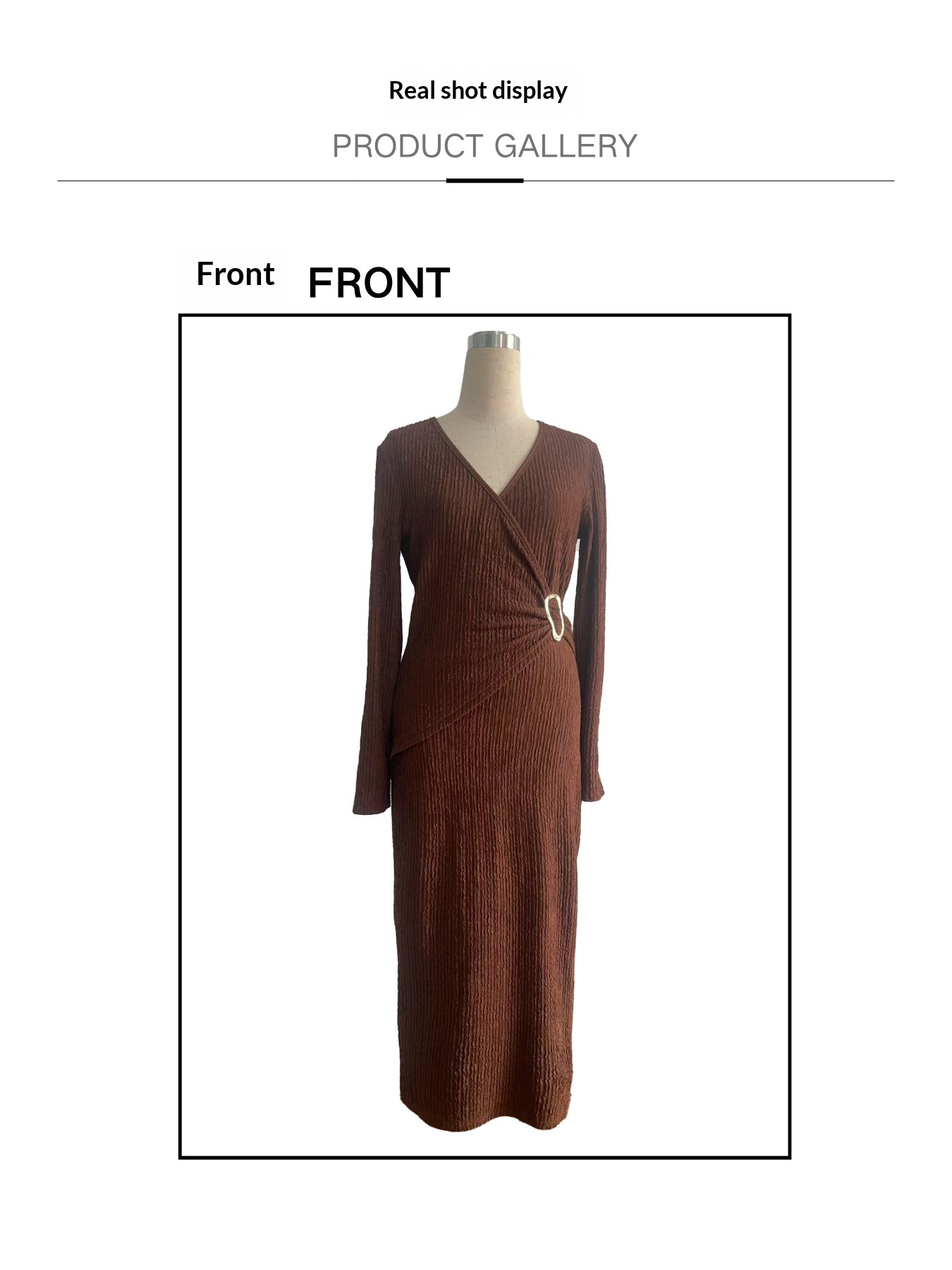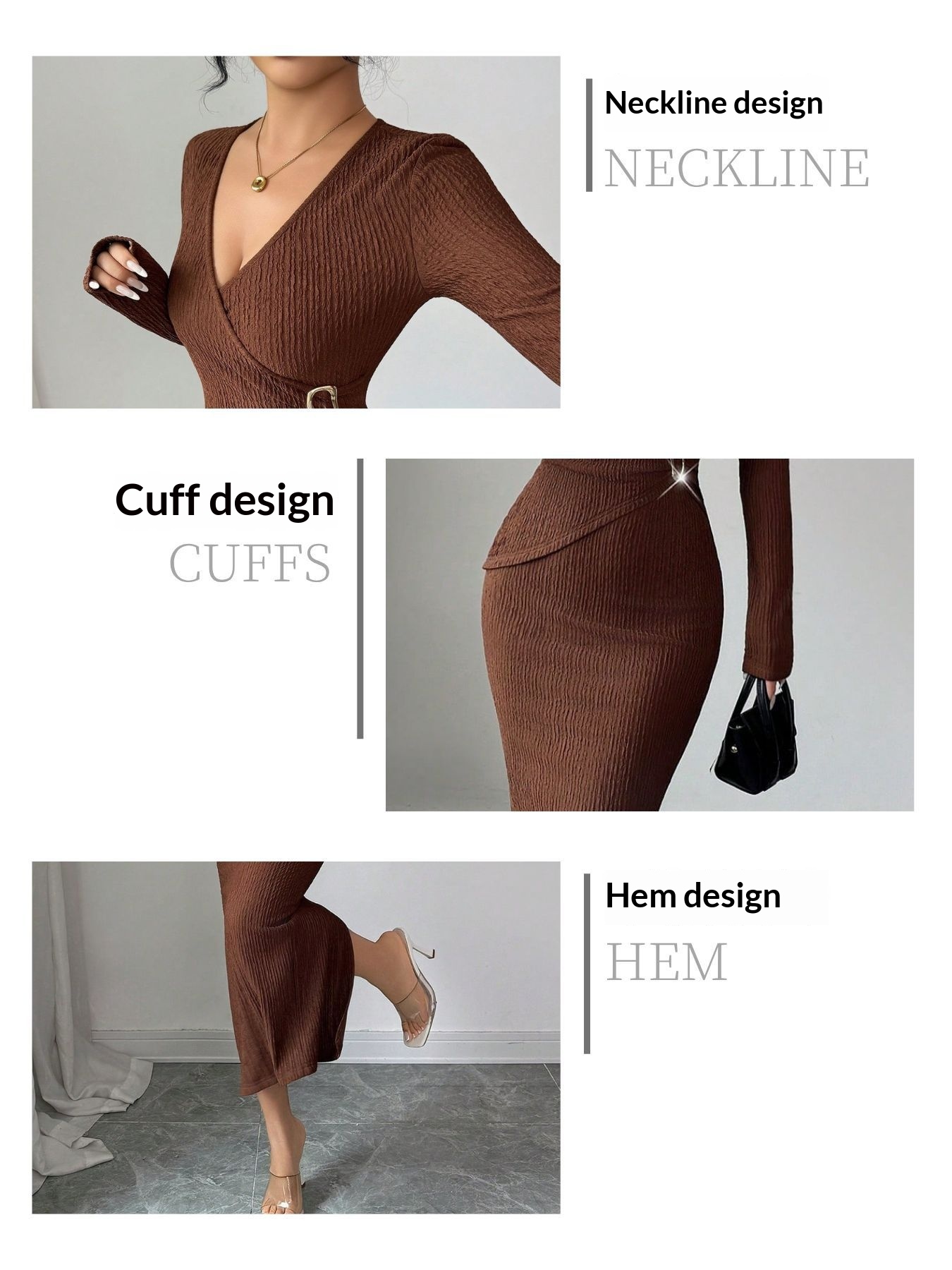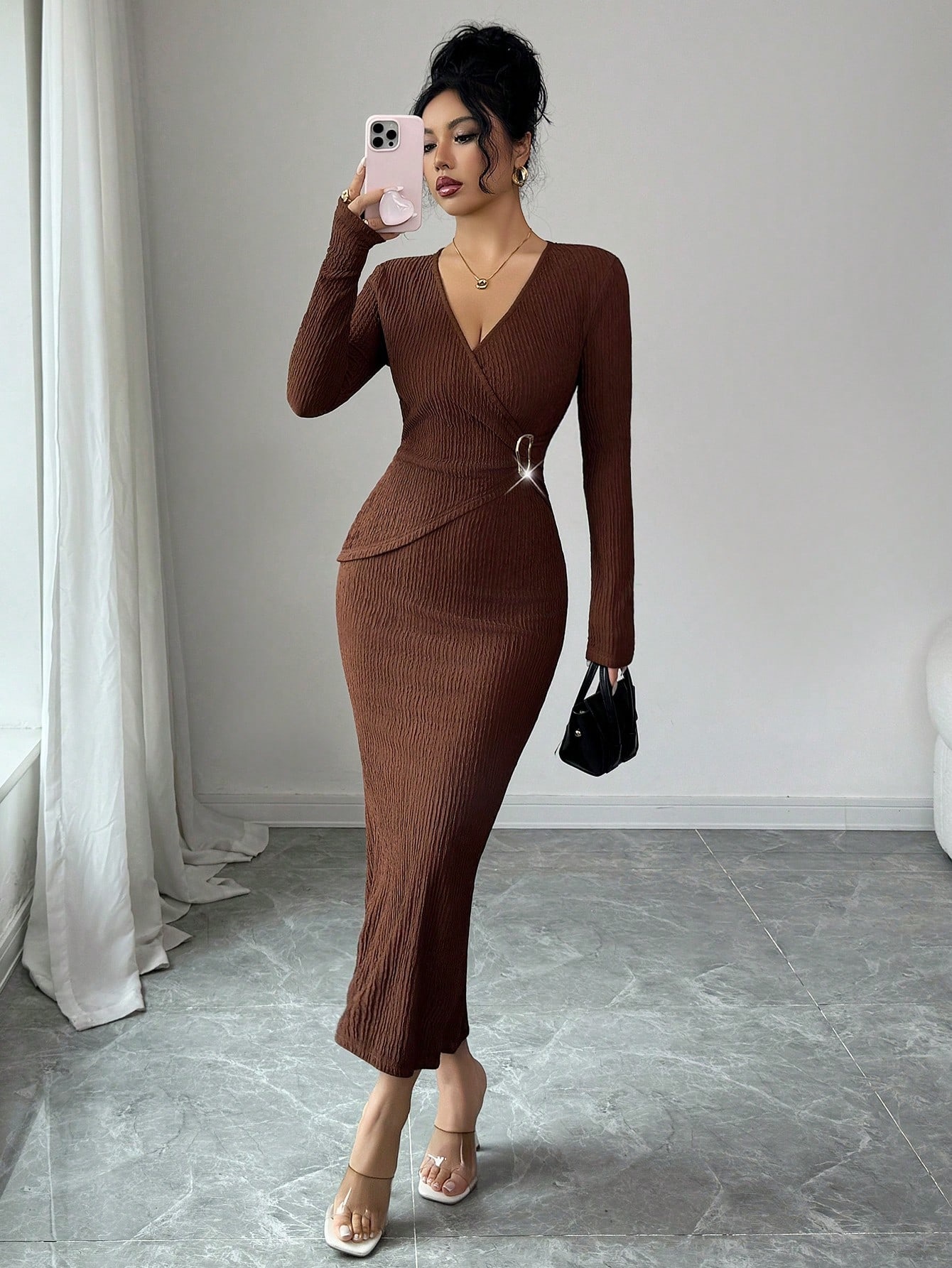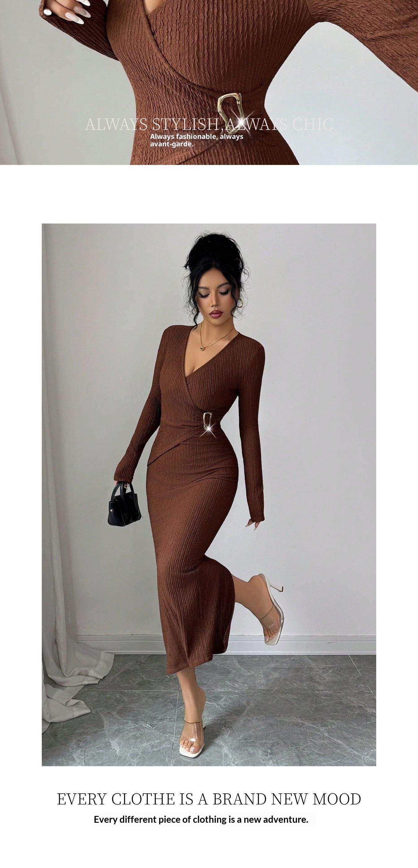 Cross-collar Knit Texture Slim-fit Slimming Dress