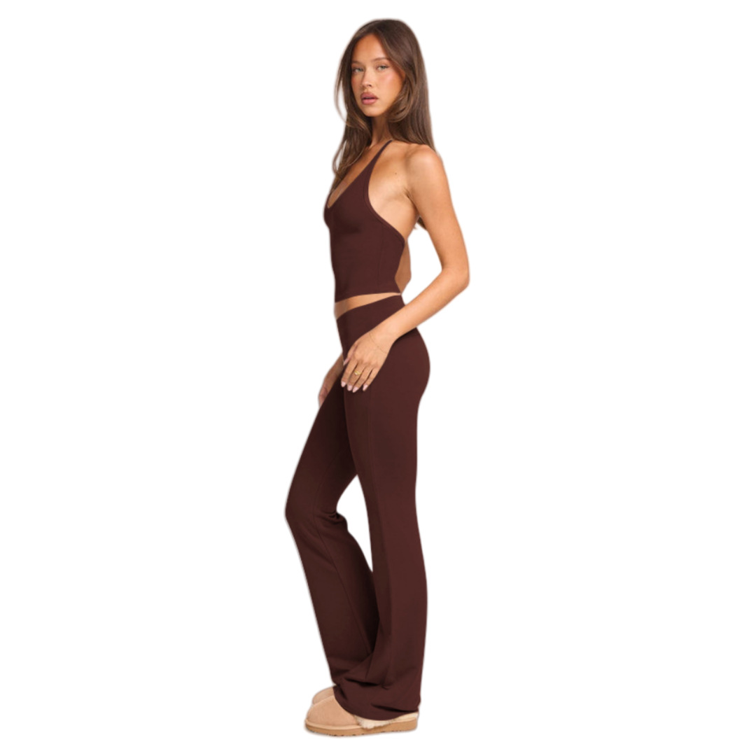 Fashionable Solid-Color Two-Piece Set With Strap Neck Tie