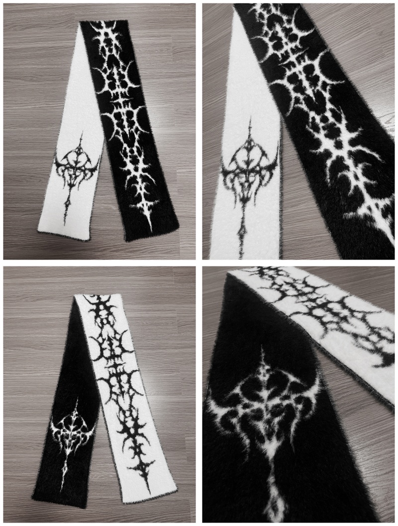 Gothic Dark Black White Gray Double-sided Faux Mink Scarf