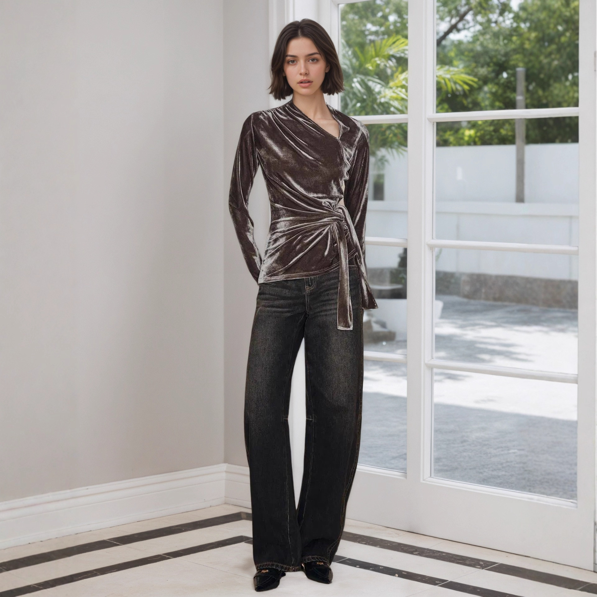 Half-open-collar Long-sleeve Base Shirt A Slim