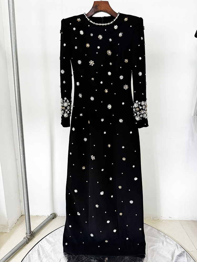 Heavy-duty Beaded And Diamond-embellished Slim-fit Maxi Dress