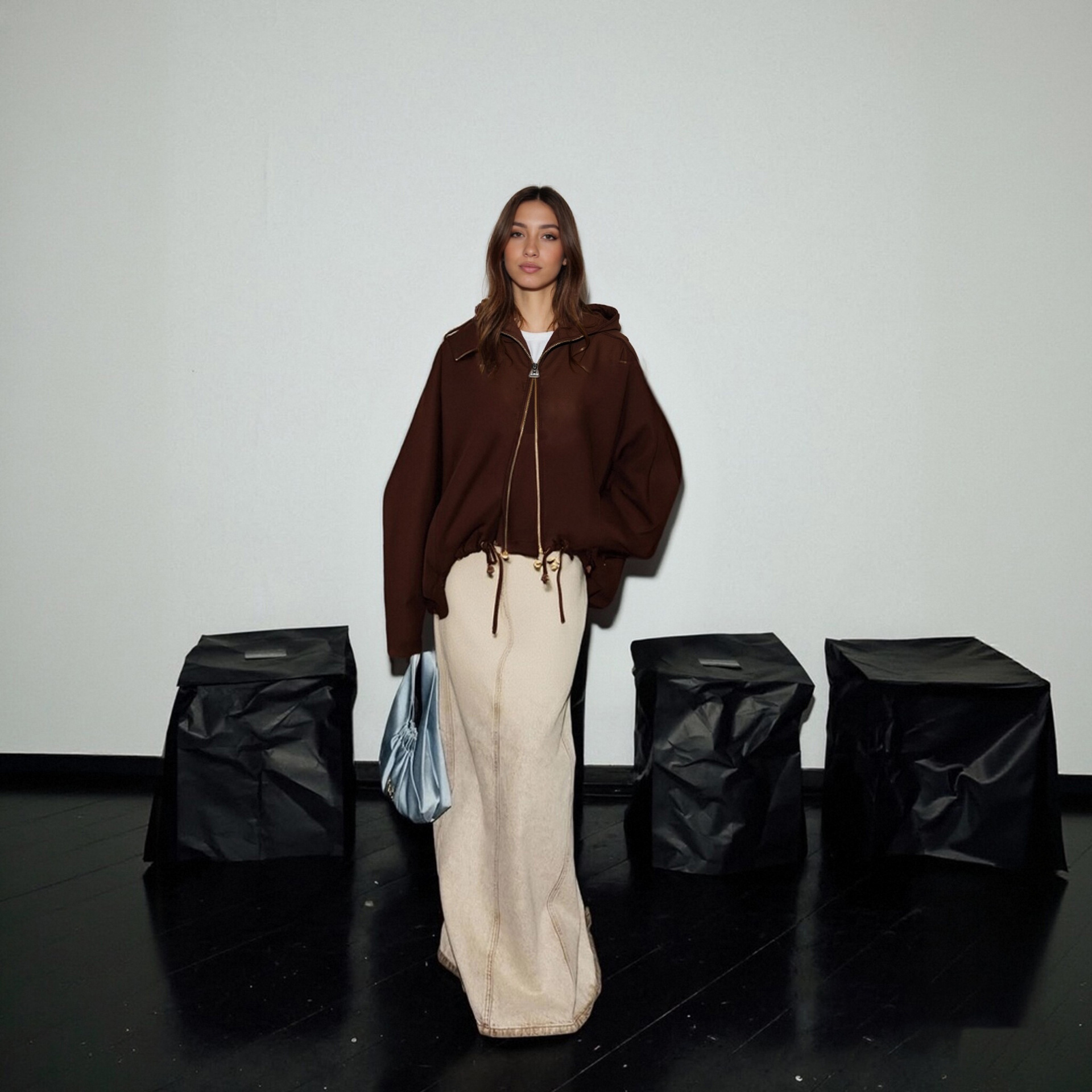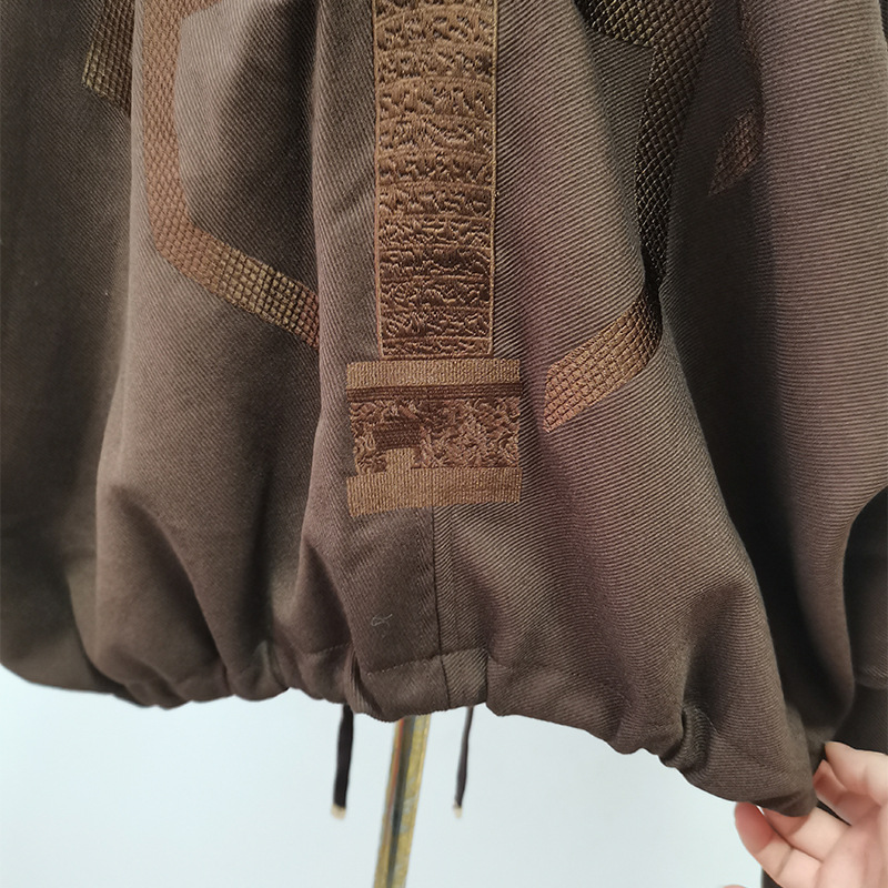 Heavy Embroidery Patchwork Loose Drawstring Silhouette Jacket