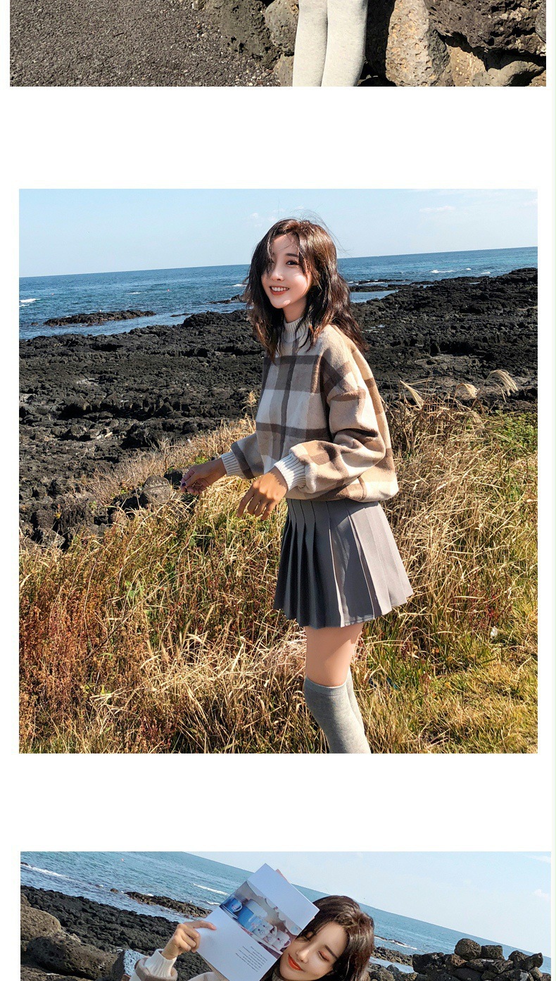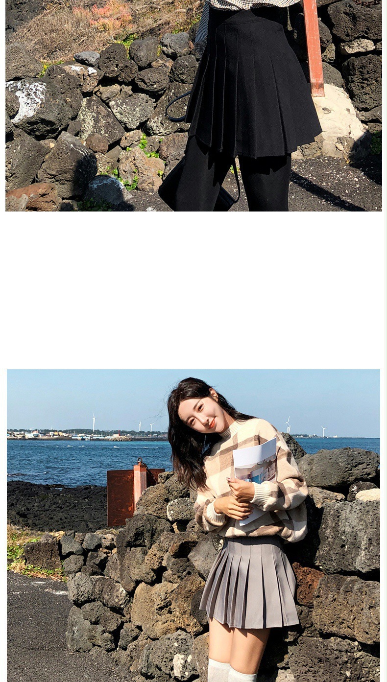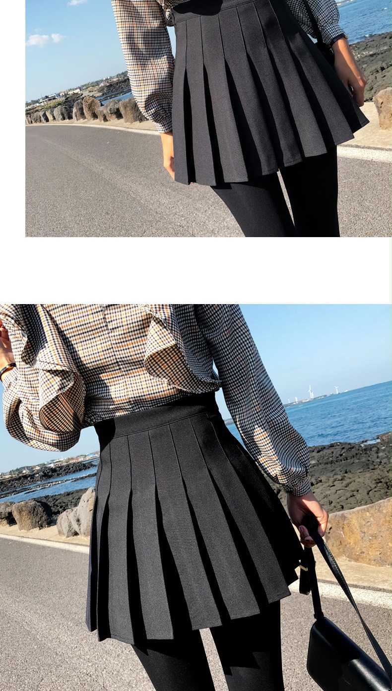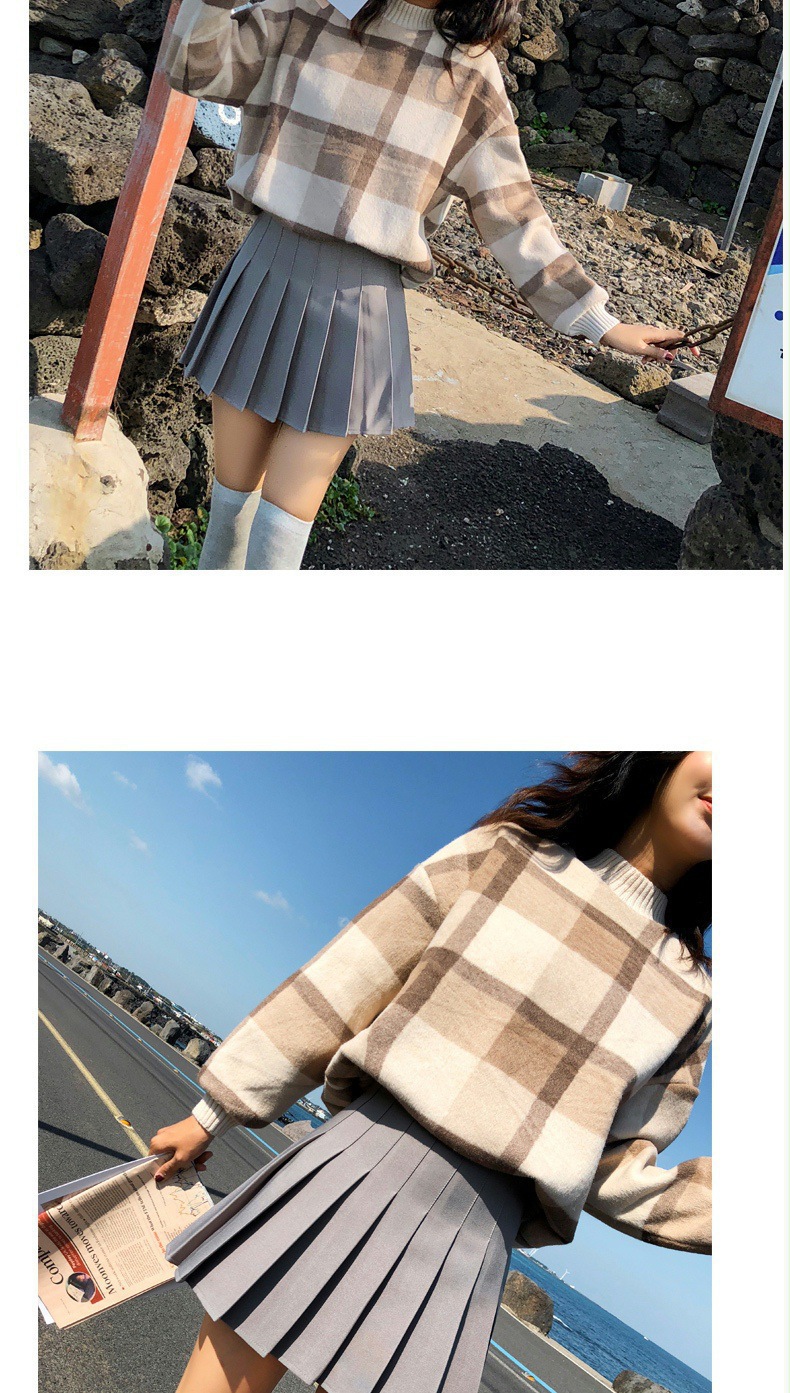 High-waisted A-line Skirt For Petite Women Gray And White Pleated Skirt