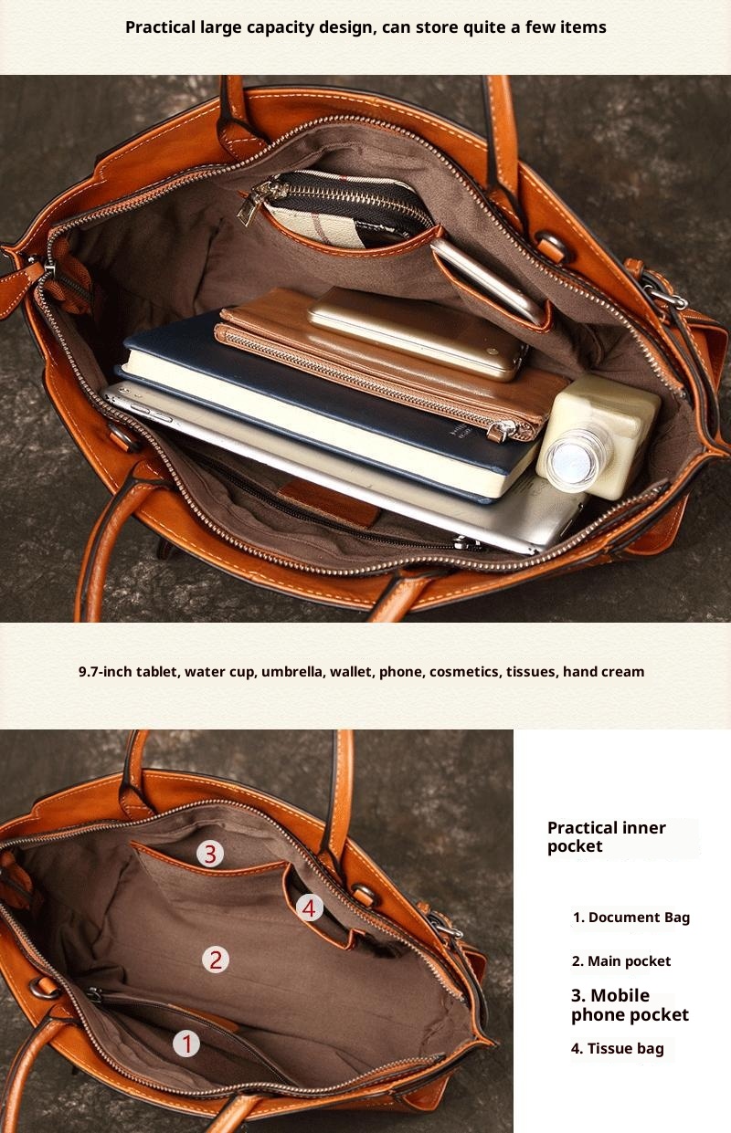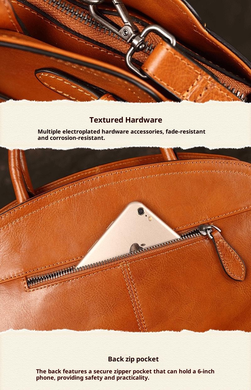 Internal structure of the bag: Zippered hidden pocket, phone pocket, document pocket, zippered compartment