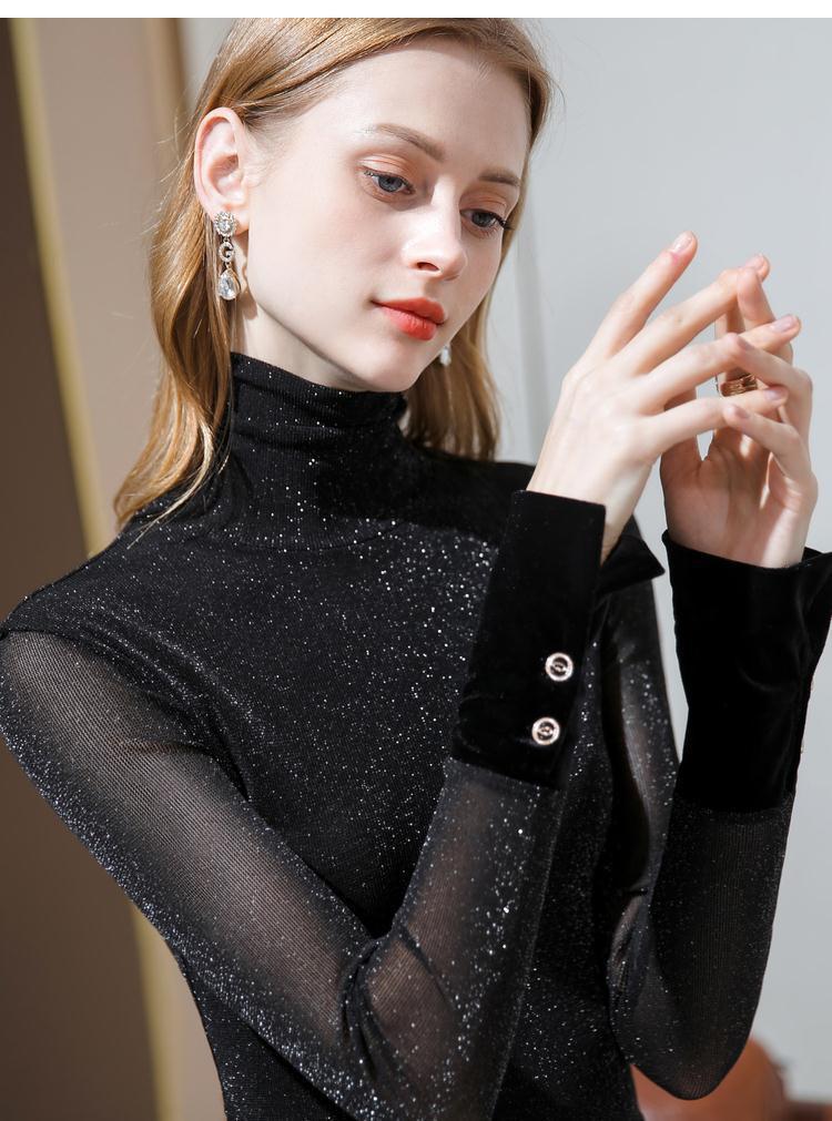 New High-neck Mesh Base Layer Women's Long-sleeved Top