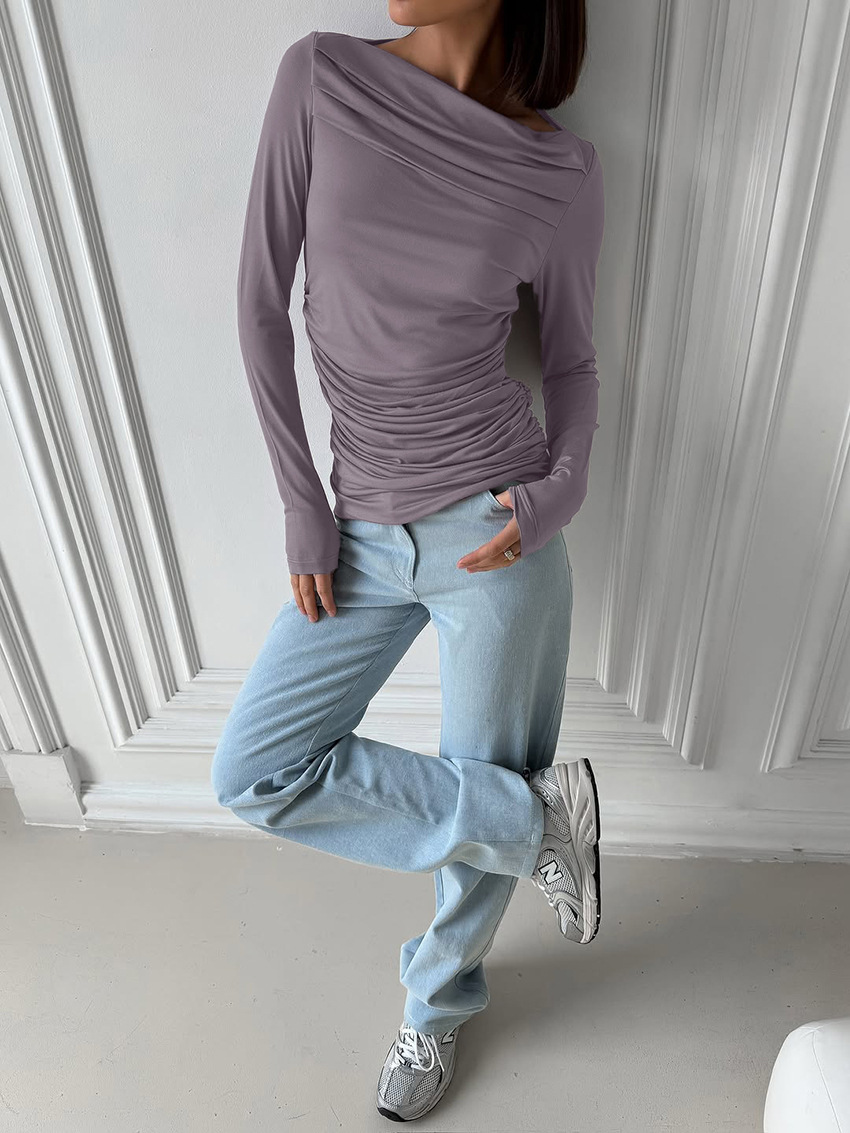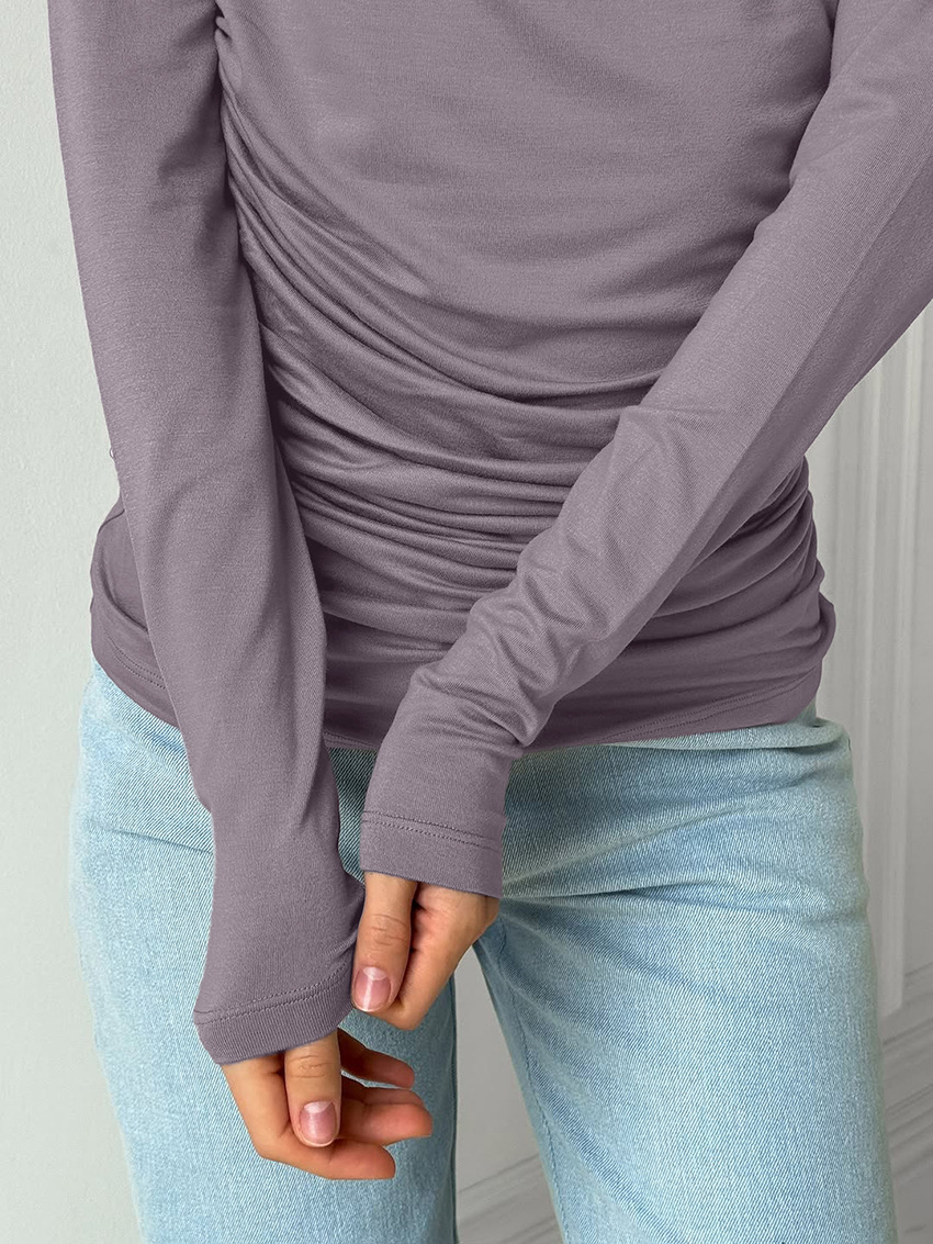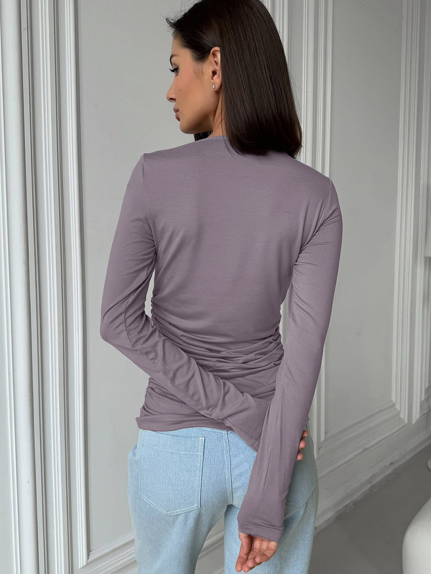 Niche Gathered Waist Regular Shoulder Long Sleeve T-shirt