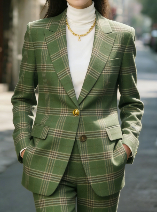 Plaid Lapel Slim-fit Long-sleeved Suit Jacket