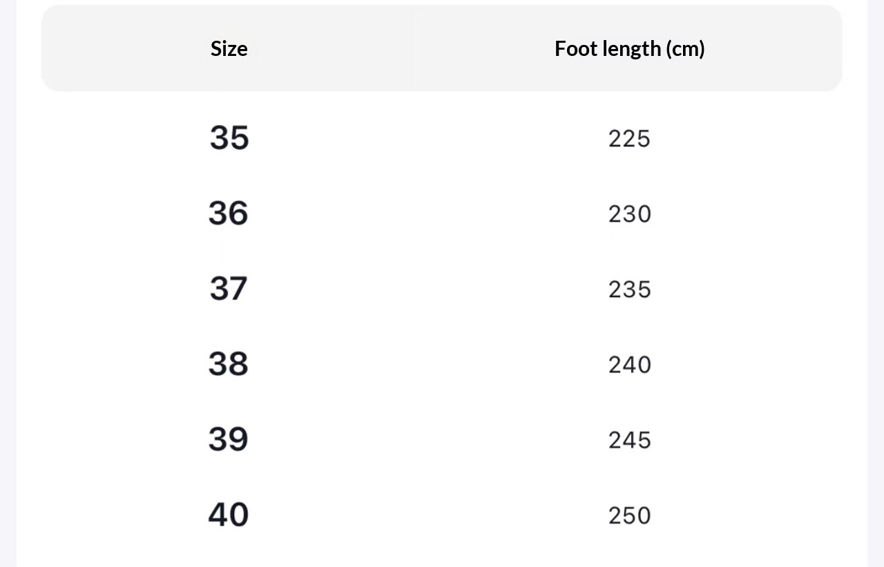 Sizes: 35, 36, 37, 38, 39, 40