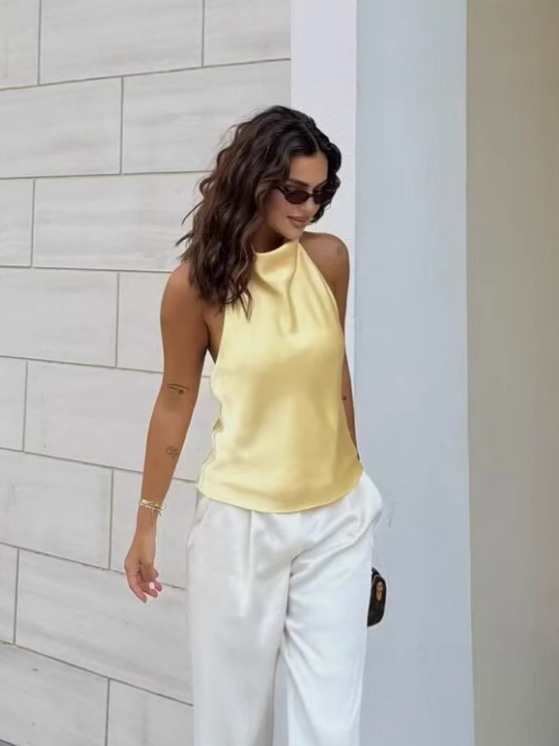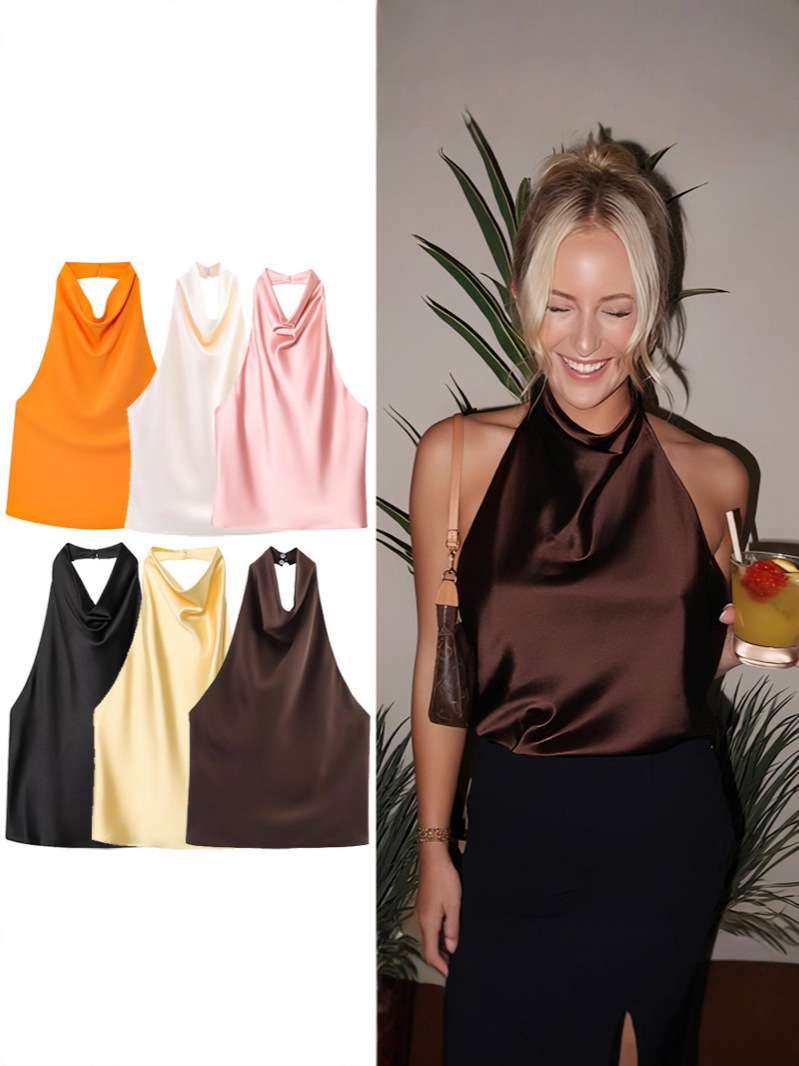 Silk Satin Elegant Halterneck Tank Top