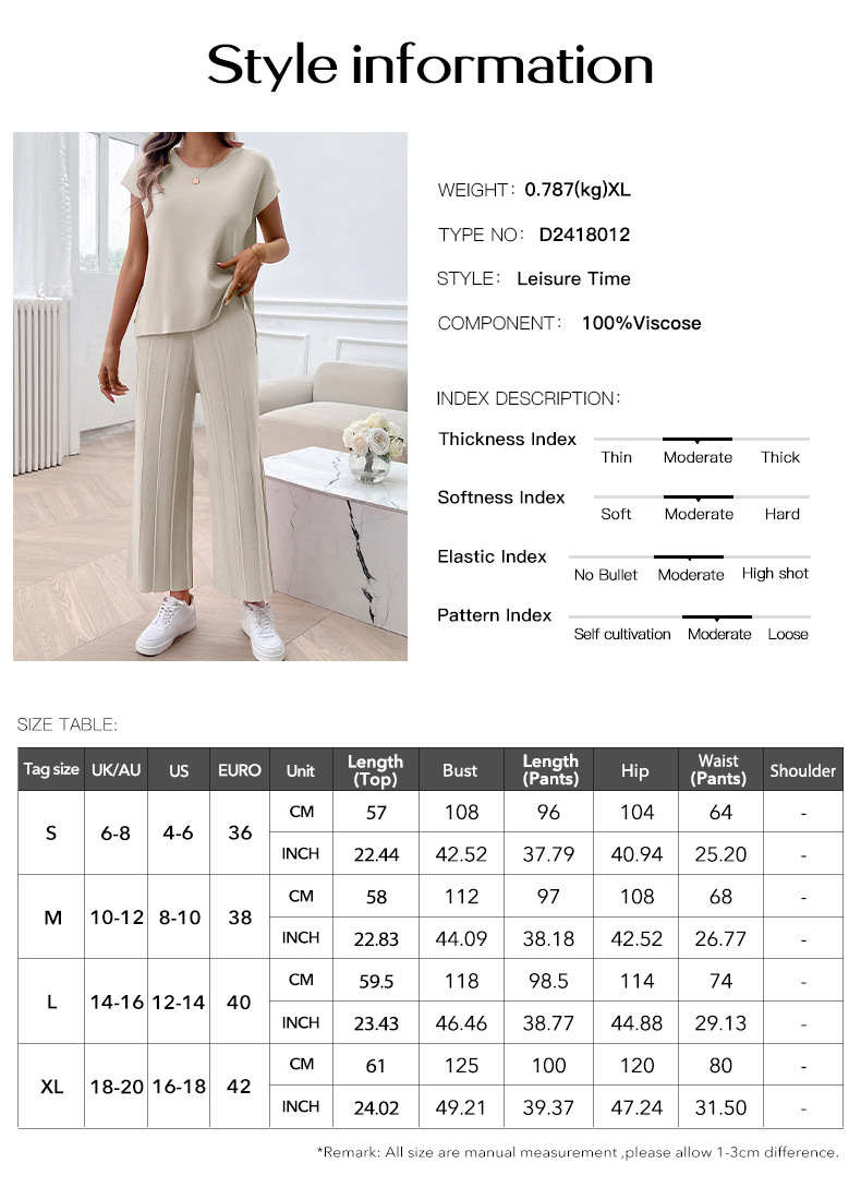 Simple Casual Style Solid Color Top Wide Leg Sweater Suit