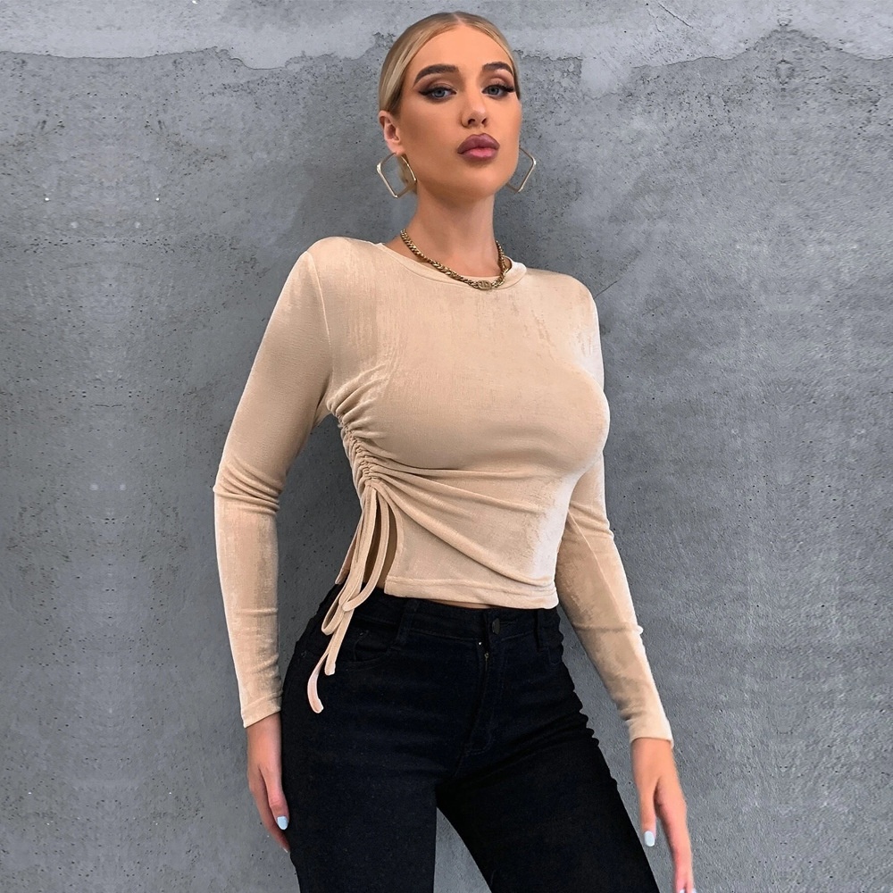 Slim-fit Round-neck Long-sleeve Glossy Knit Top For Women