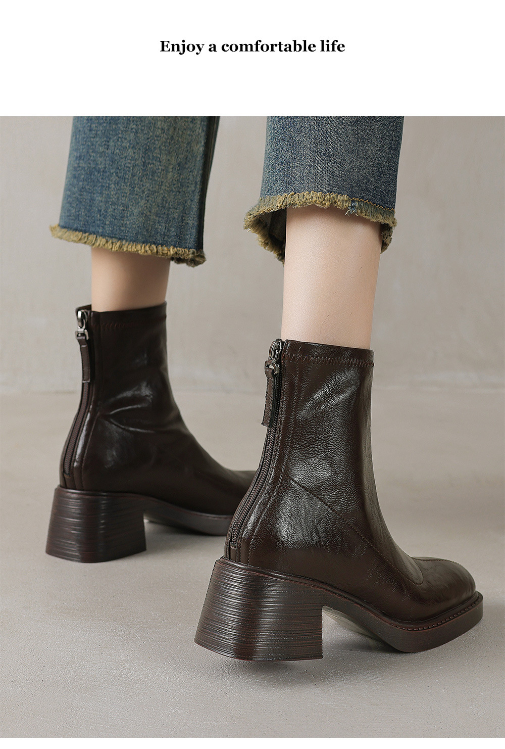 Slimming Versatile Chunky Mid-heel Square-toe Ankle Boots For Women