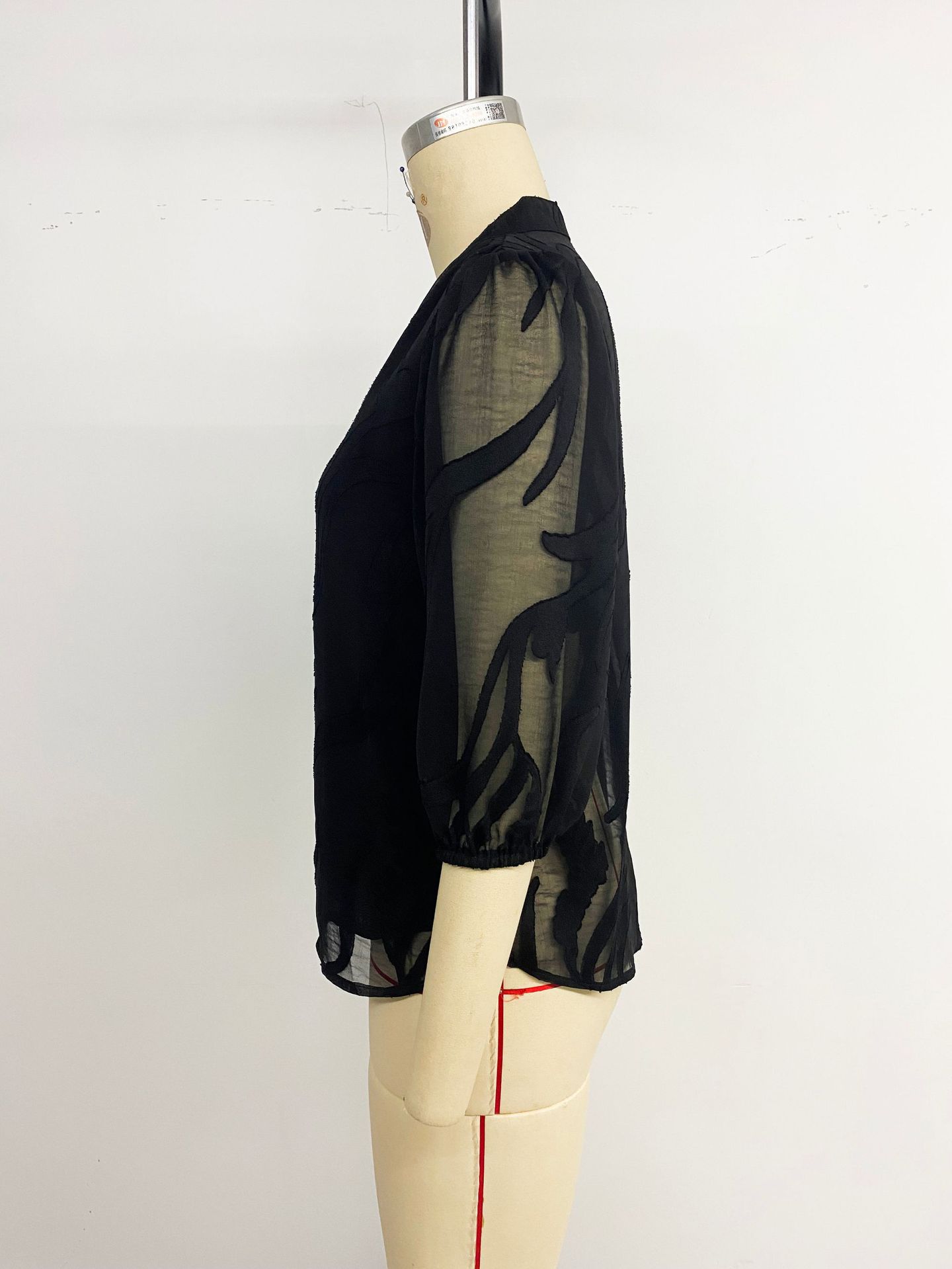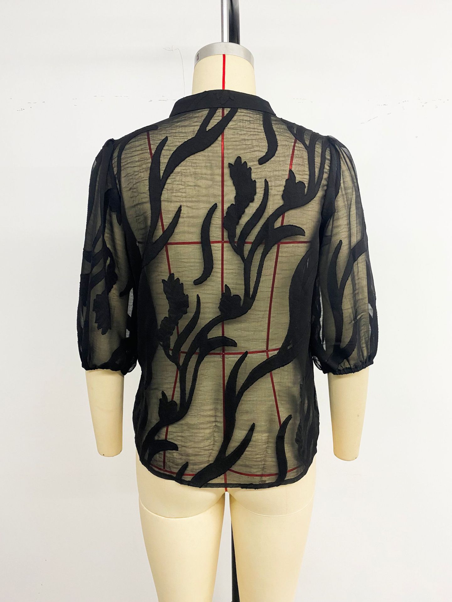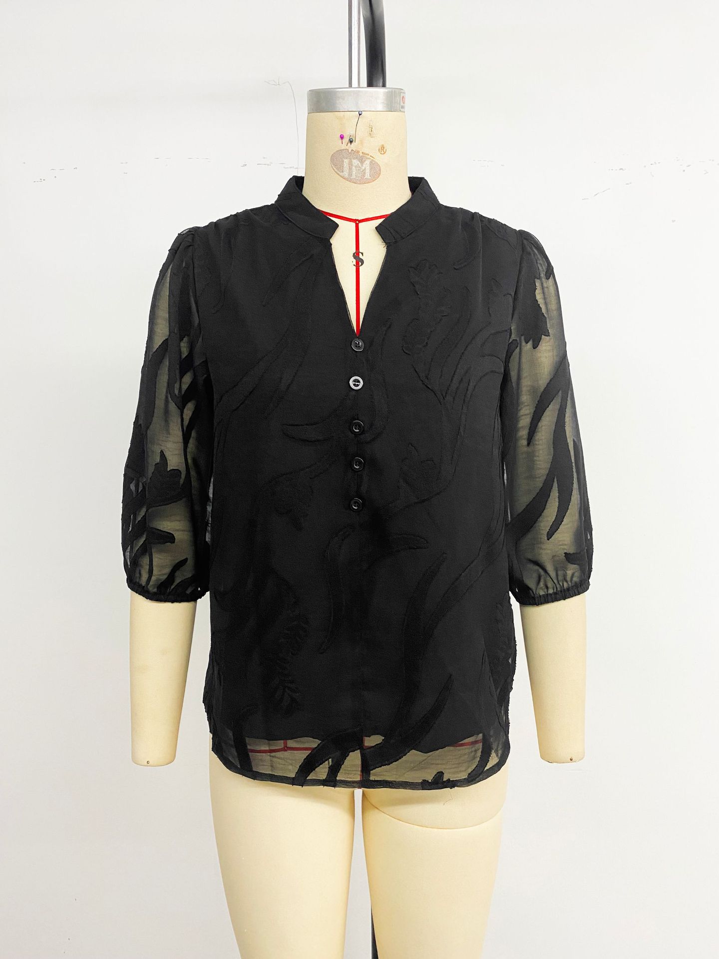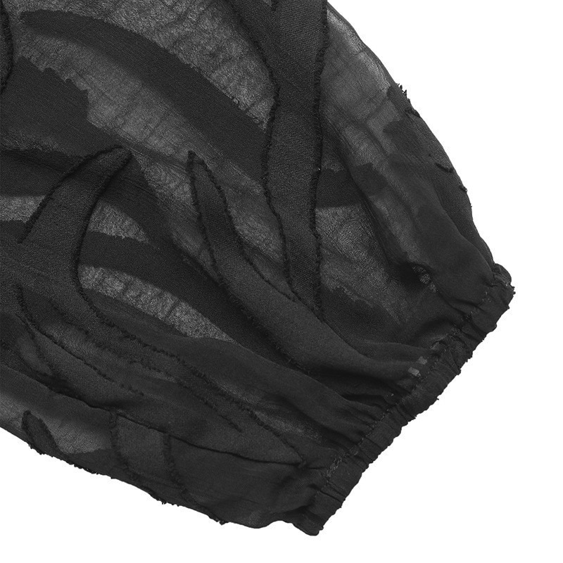 Solid-color Jacquard Pullover Shirt With A Lace-panel Stand-up Collar