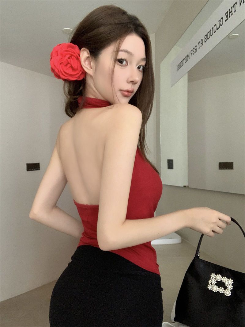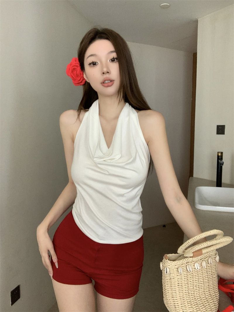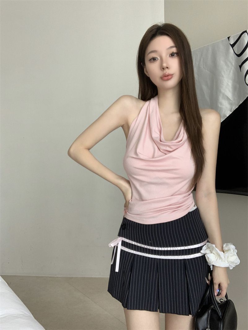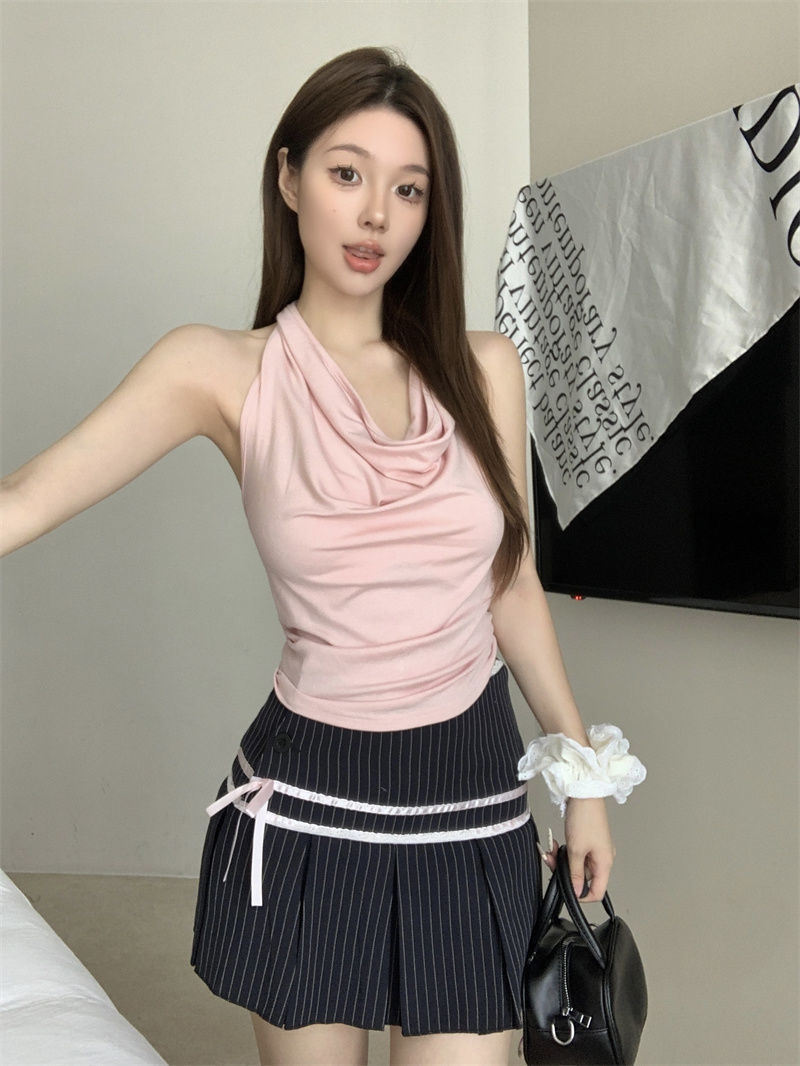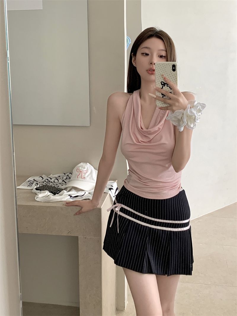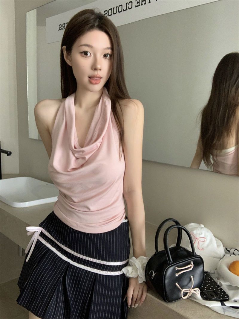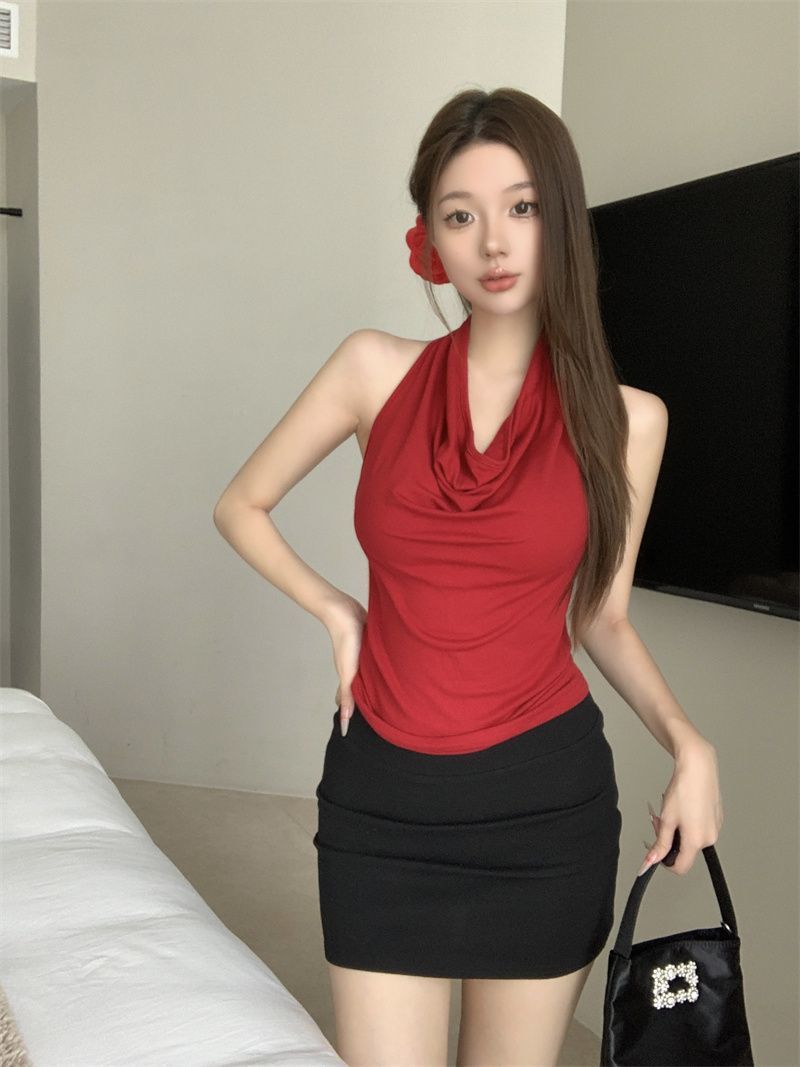 Spicy Girl-fit Sexy Boatneck Halterneck Sleeveless Top