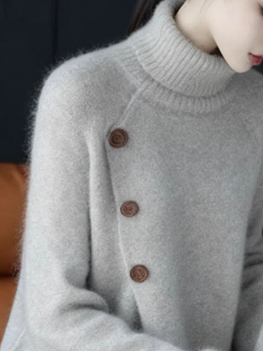 Stylish Elegant And Stunning Gray Turtleneck Long-sleeve Sweater