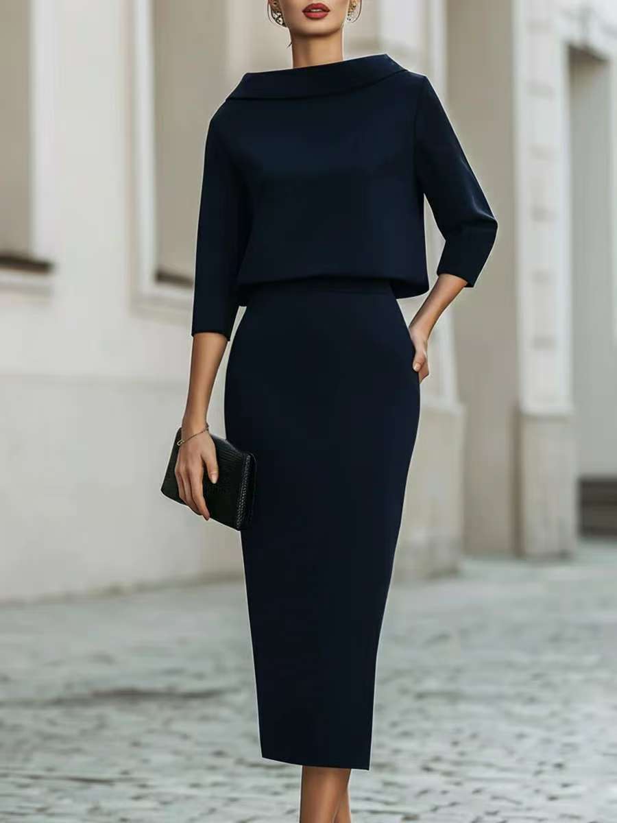Stylish Urban Commuter Two-piece Set Featuring A Bodycon Skirt And Top