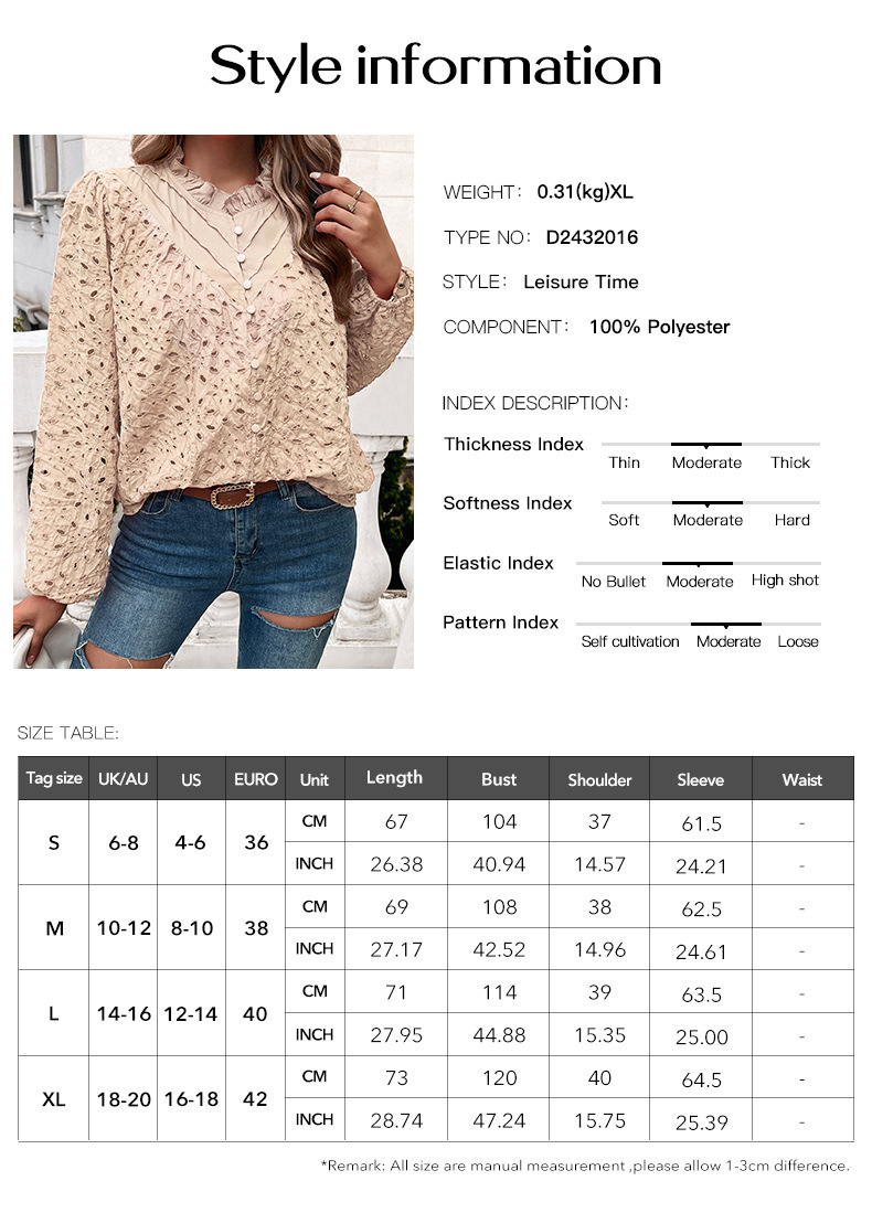 Temperament Leisure Ripped Polo Puff Sleeve Cardigan Button Long Sleeve Top