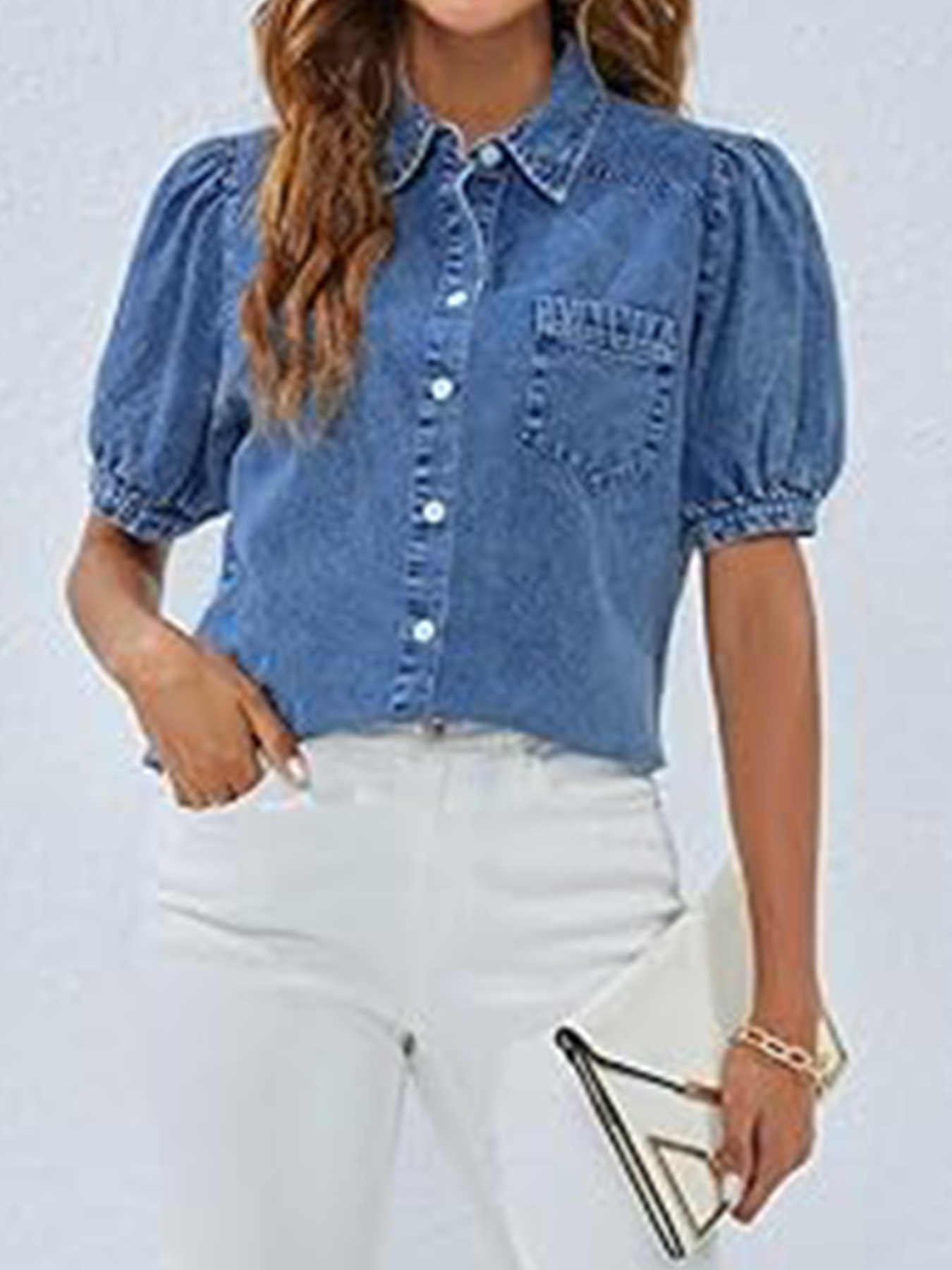 Turn-down Collar Slim-fit Denim Shirtversatile And Casual