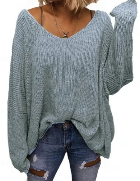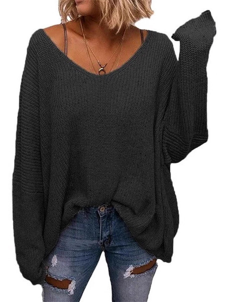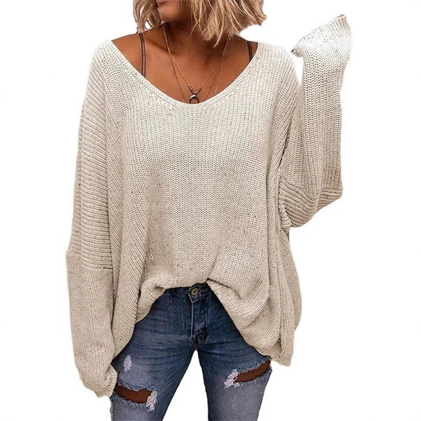 V-neck Loose-fitting Long-sleeve Sweater