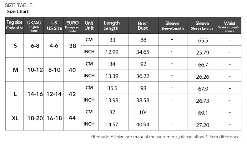 1. Asian sizes are 1 to 2 sizes smaller than European and American people. Choose the larger size if your size between two sizes. Please allow 2-3cm differences due to manual measurement. 2. Please check the size chart carefully before you buy the item, if you don't know how to choose size, please contact our customer service. 3.As you know, the different computers display colors differently, the color of the actual item may vary slightly from the following images.