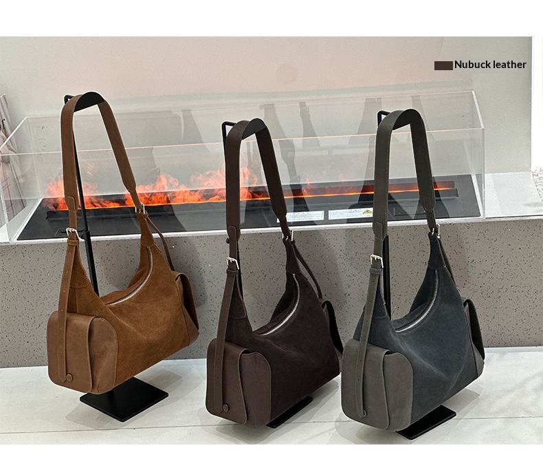 Vintage Boston Bag With Frosted Cowhide And Large Capacity Shoulder Bag