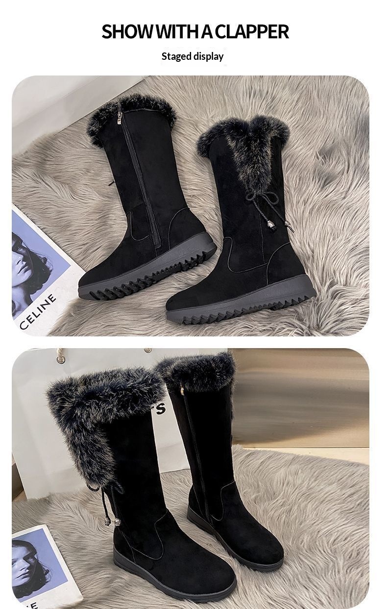 Winter Chunky-Soled Flat-Heeled Furry Snow Boots