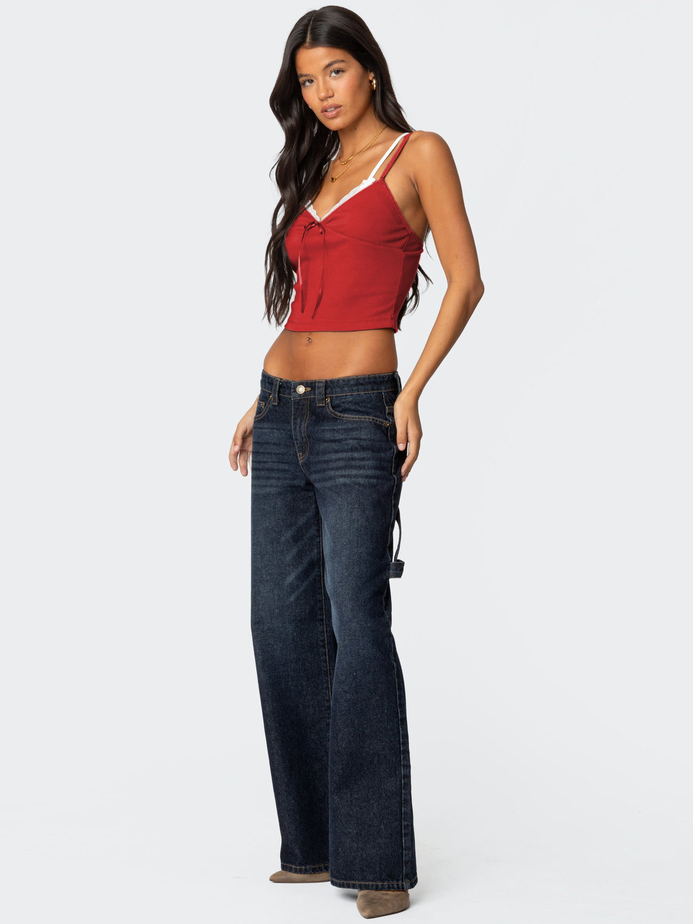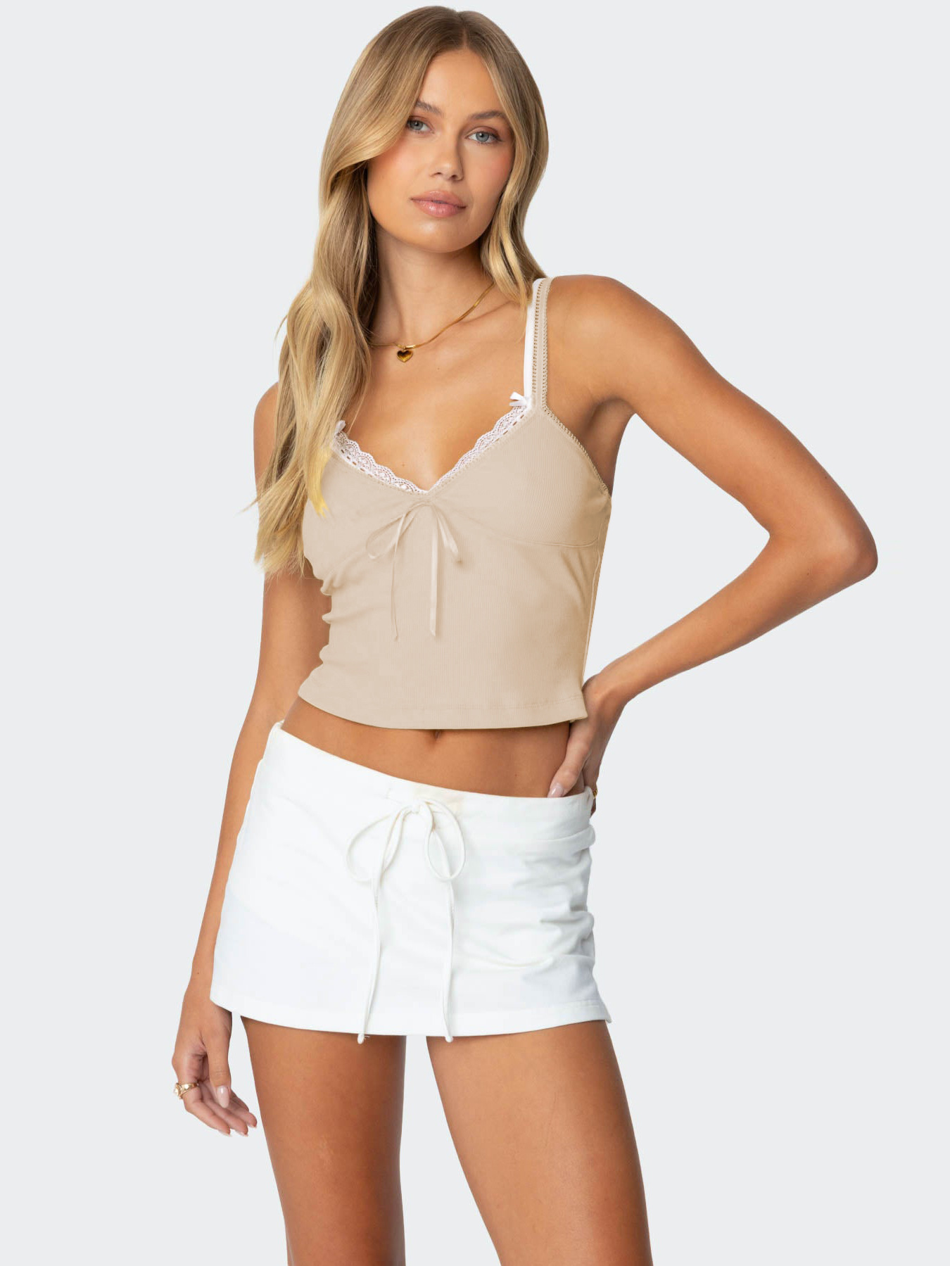 Women's Bow Collage Contrast Color Lace Fake Two-piece Top