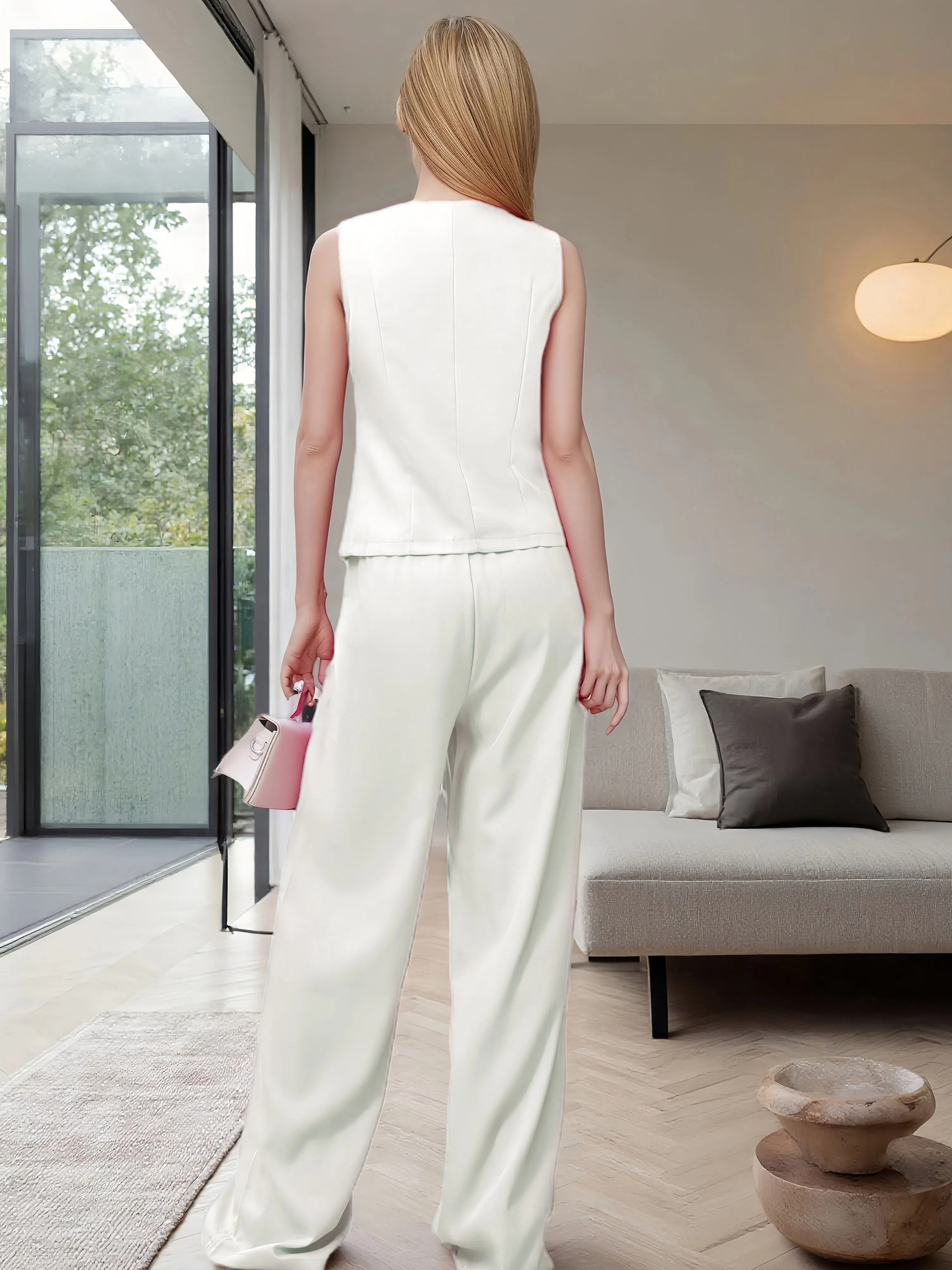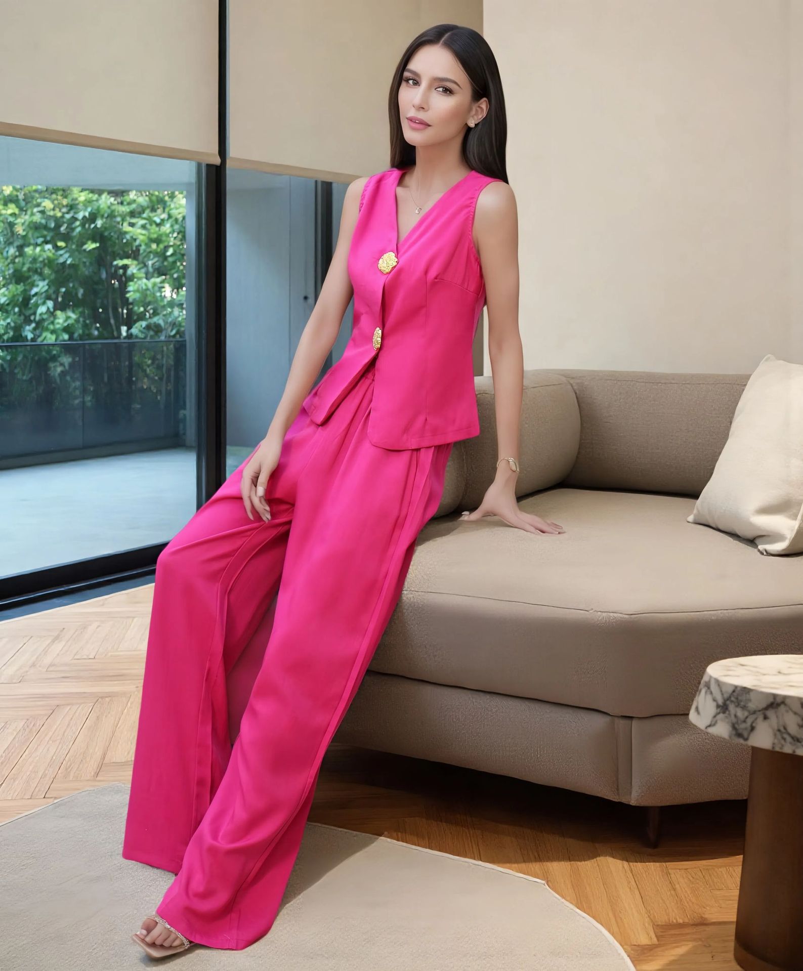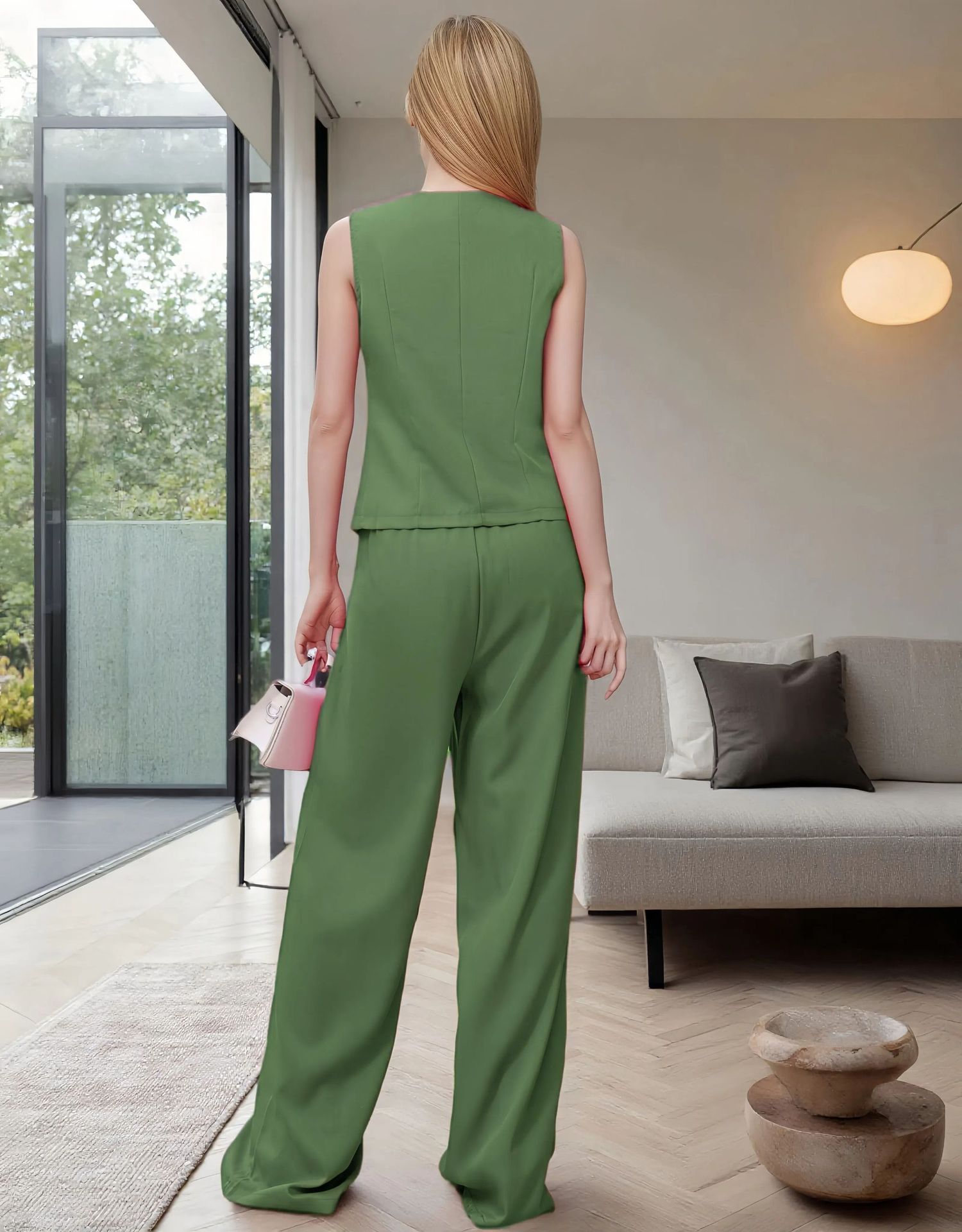 Women's Fashion Button Vest Pants Casual Two-Piece Set