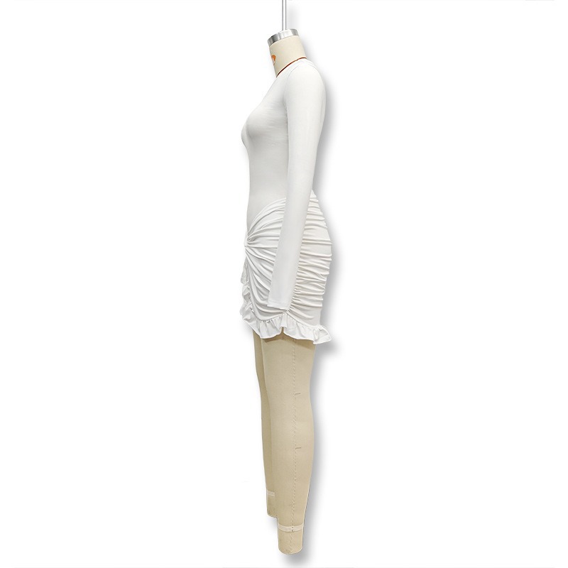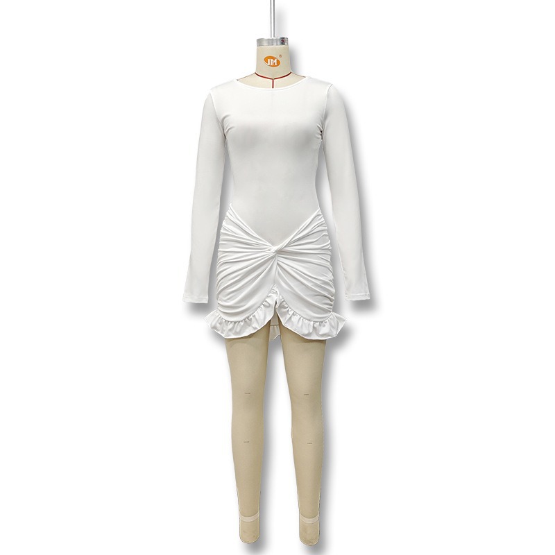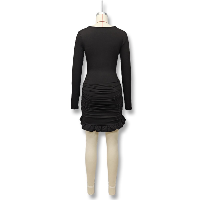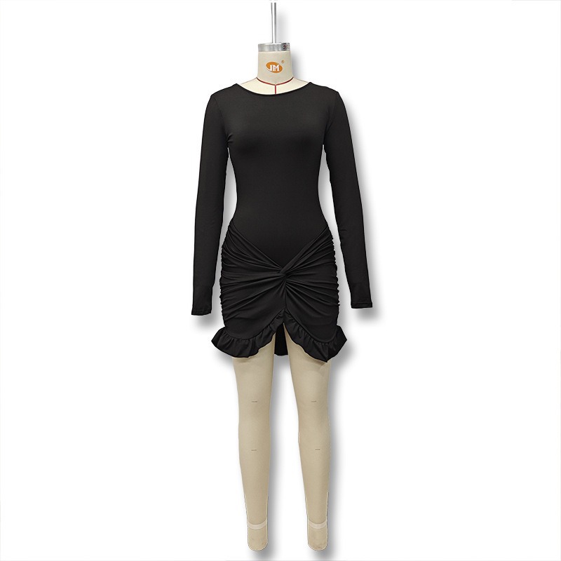 Women's Fashion Round Neck Long Sleeve Slim Fit Pleated Bodycon Dress