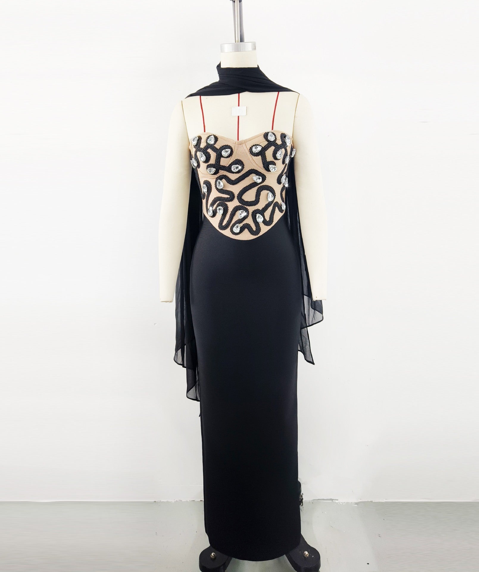 Women's High-end Delicate Bead-set Diamond Evening Dress