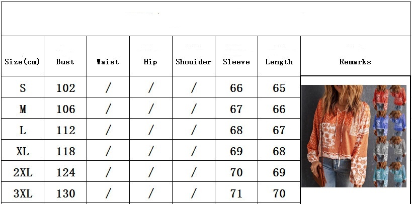 Women's Long-sleeved Printed Ethnic Blouse T-shirt Shirt