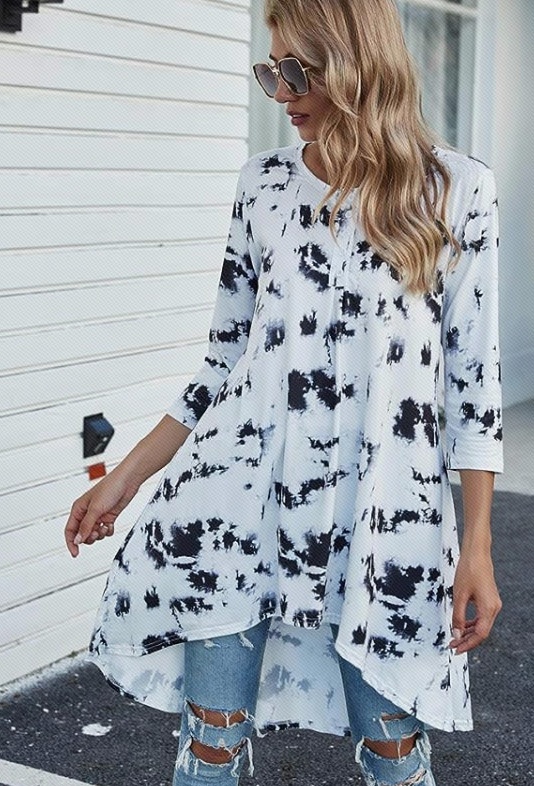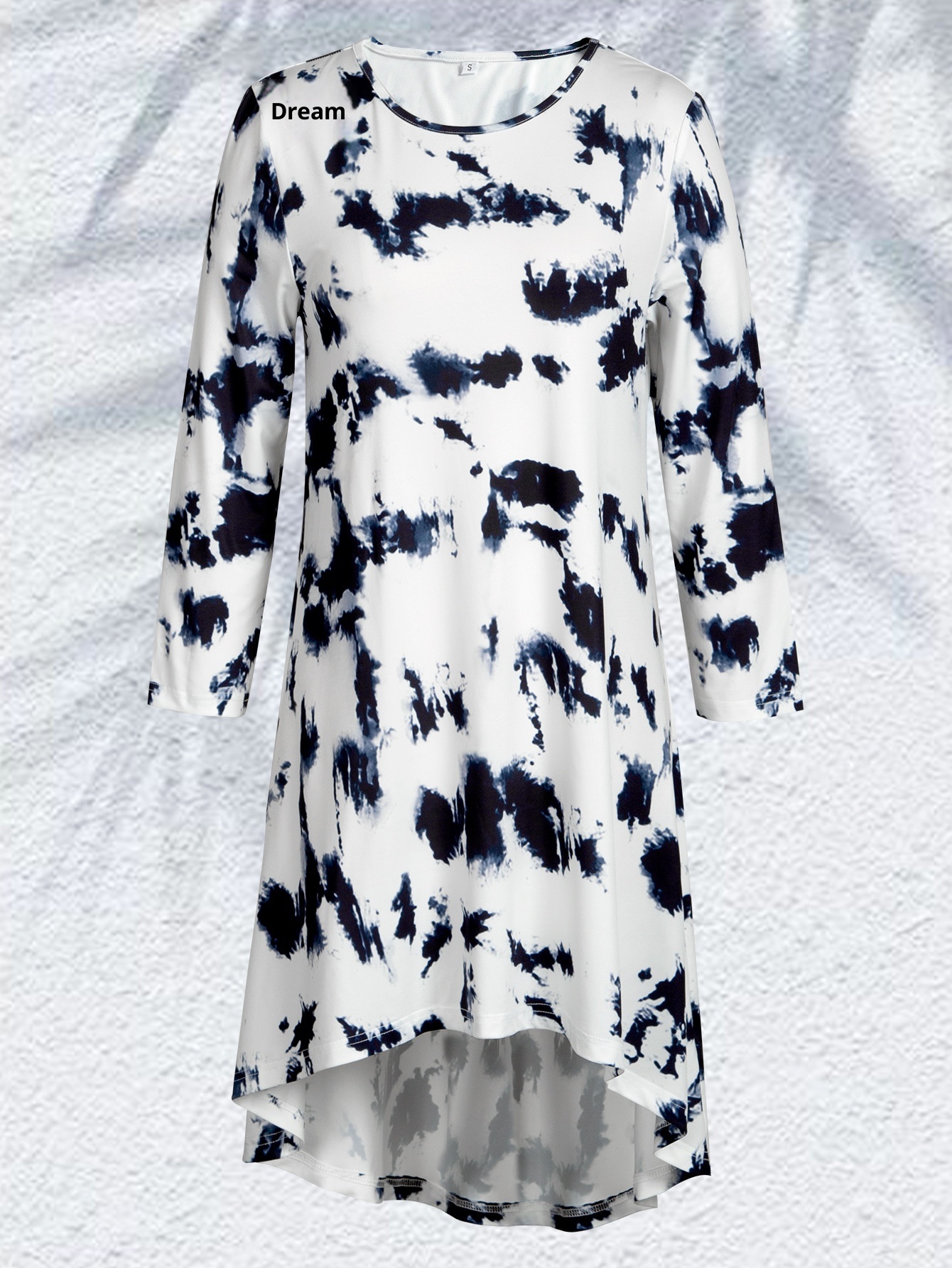Women's New Casual Round Neck Printed Long Sleeve Mid-length Top