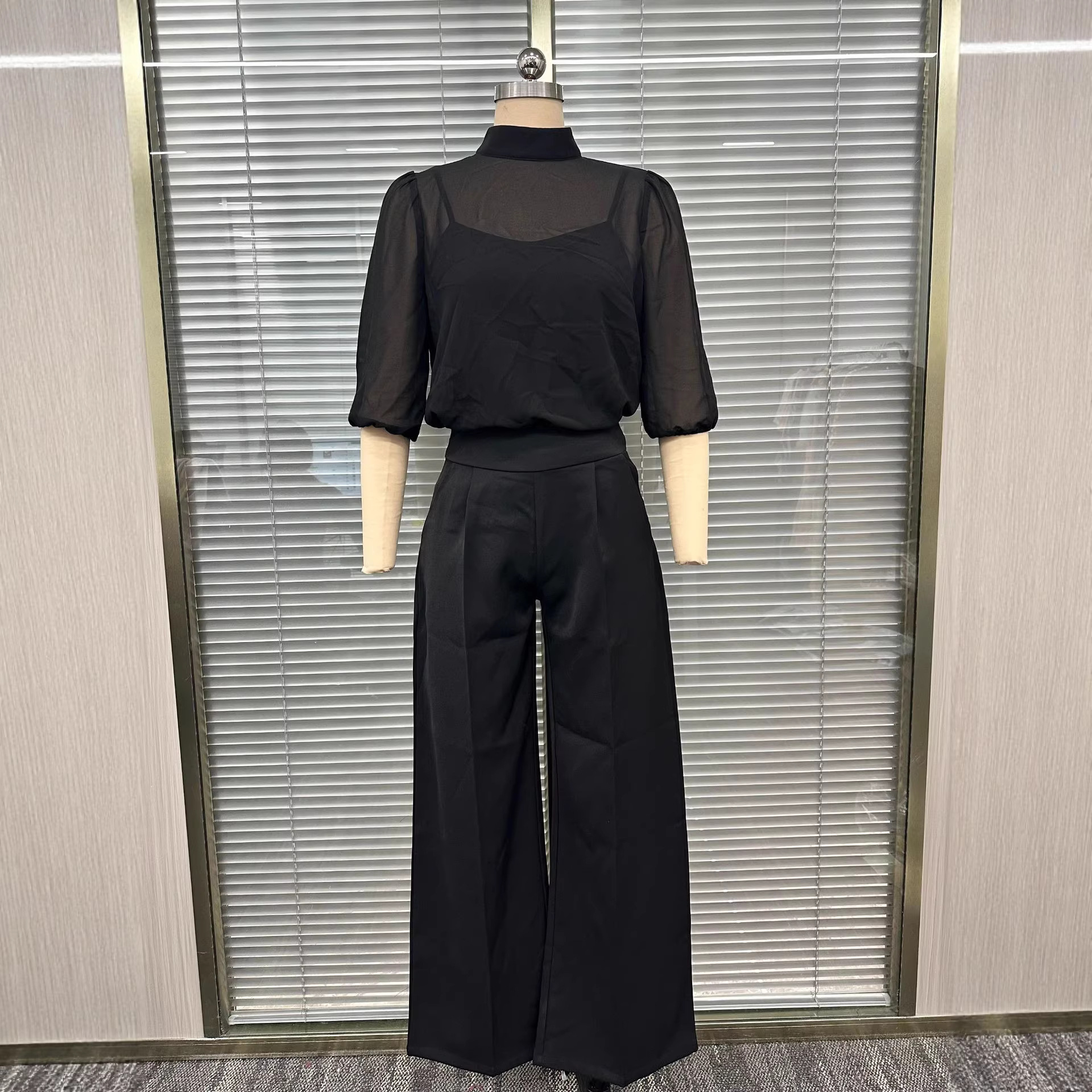 Womens New Summer Figure-flattering Printed Short-sleeve Wide-leg Pants Three-piece Set