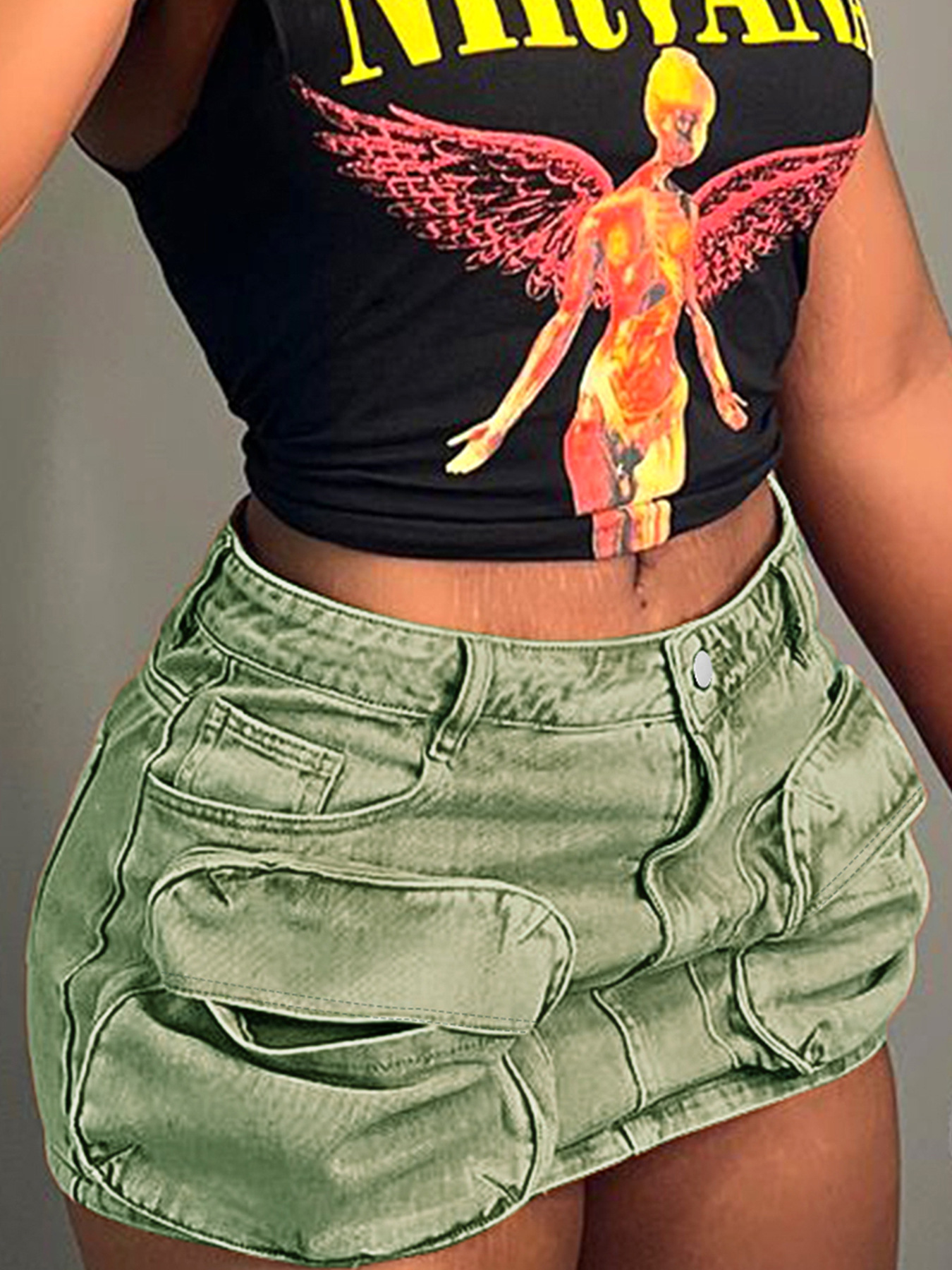 Women's Non-stretch Straight Sexy Workwear Pocket Denim Shorts