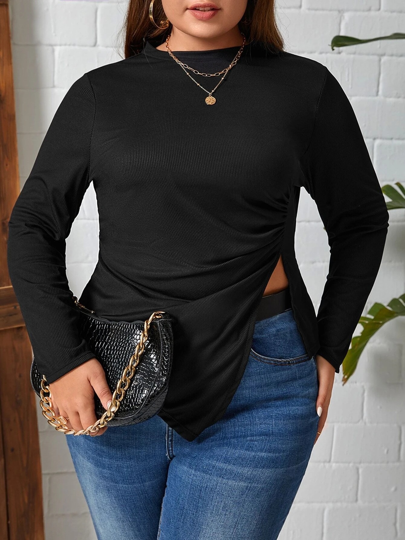 Women's Round-neck Slim-fit Asymmetric Knit Long-sleeve Versatile Top