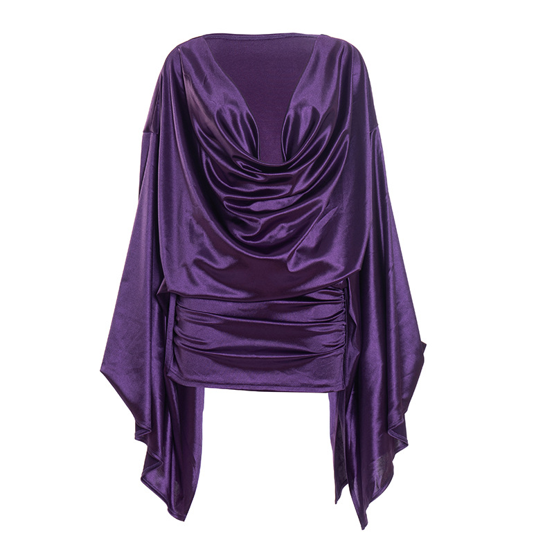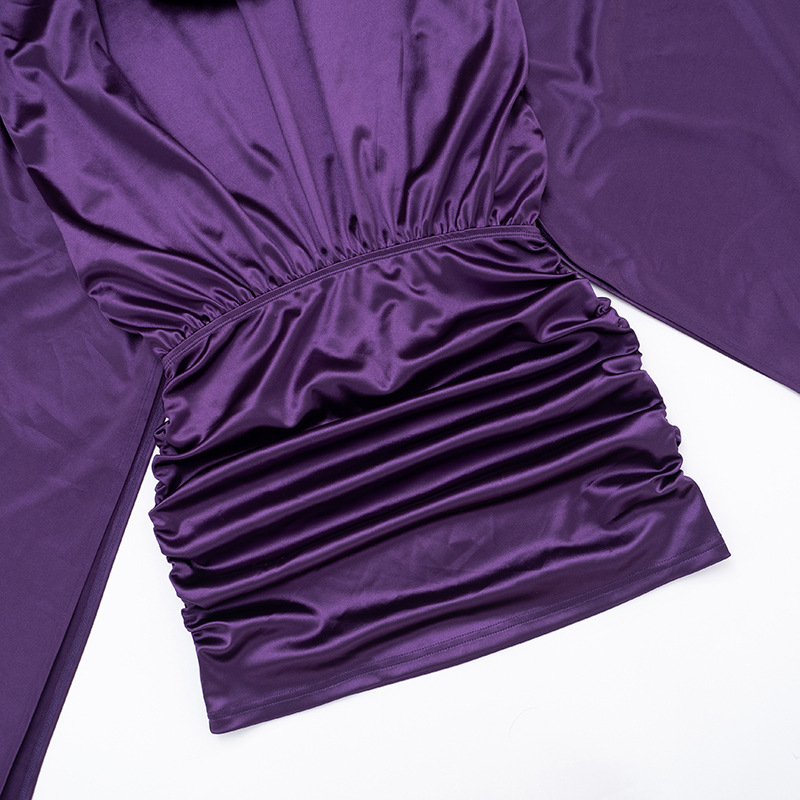 Women's Solid Color Elegant Draped Collar Swing Sleeve Bodycon Dress