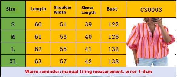 Women's Striped Shirt Puff Sleeve Loose Top
