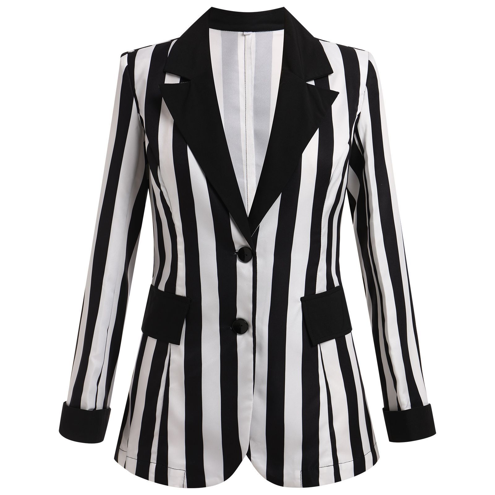 Womens Striped Slim-Fit Lapel Long-Sleeve Jacket